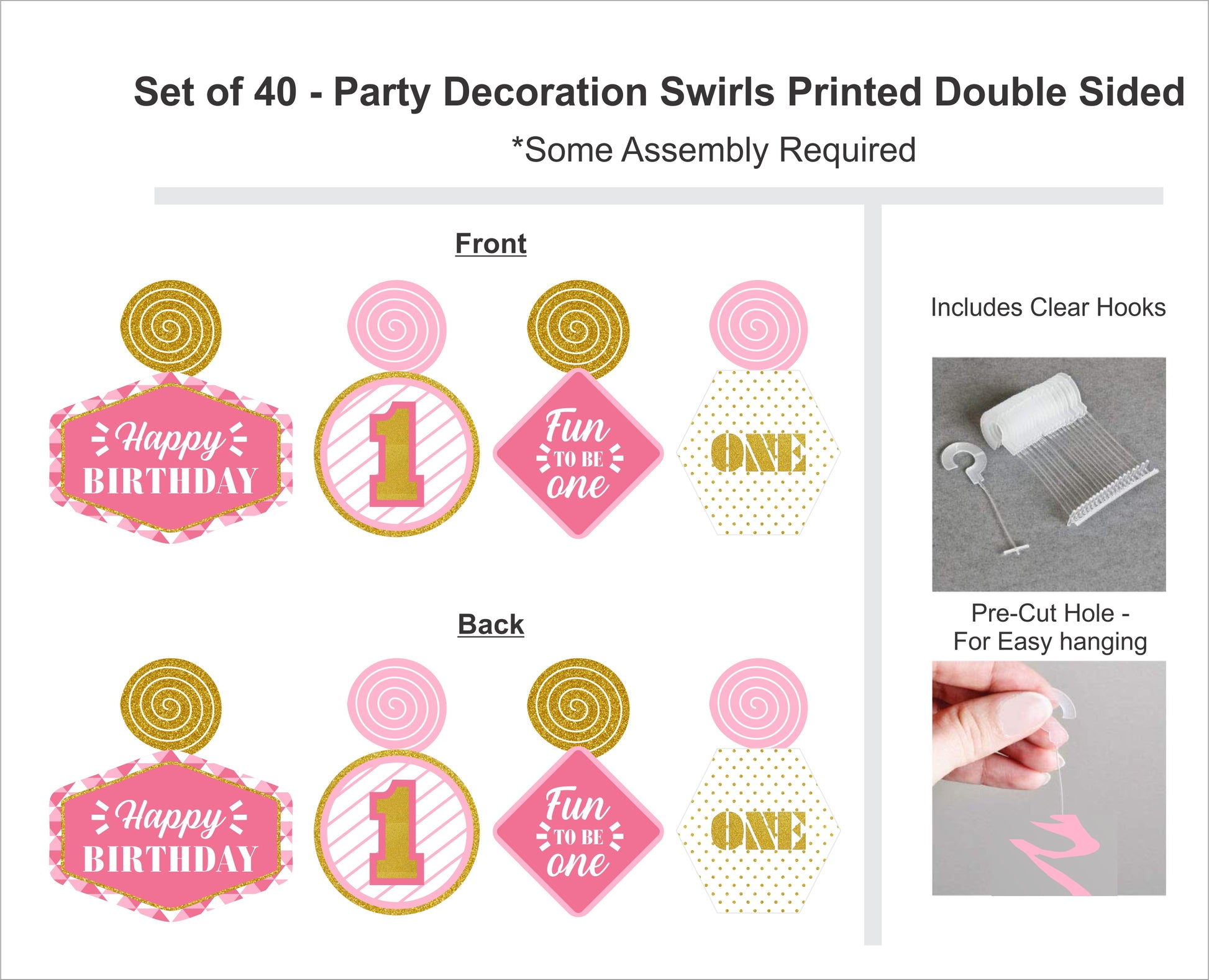 - How to use: - First Birthday hanging swirl decorations can be directly hung on ceilings, windows, branches, doorways, etc., with a hook on top of each swirl. Also suitable for indoor and outdoor places.