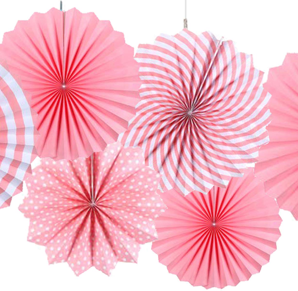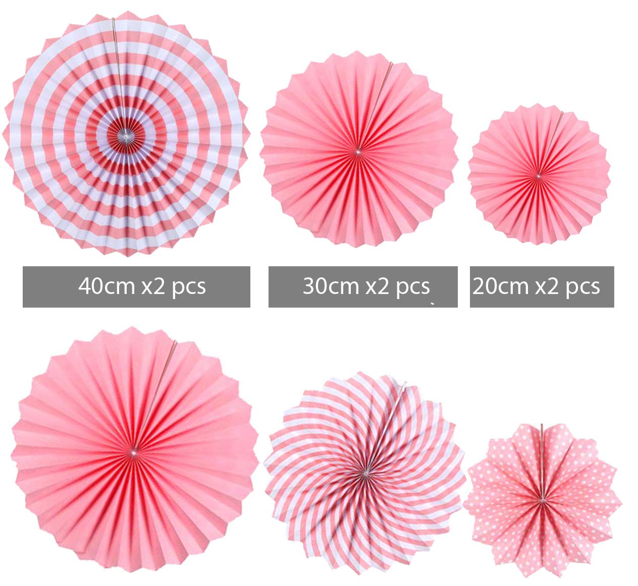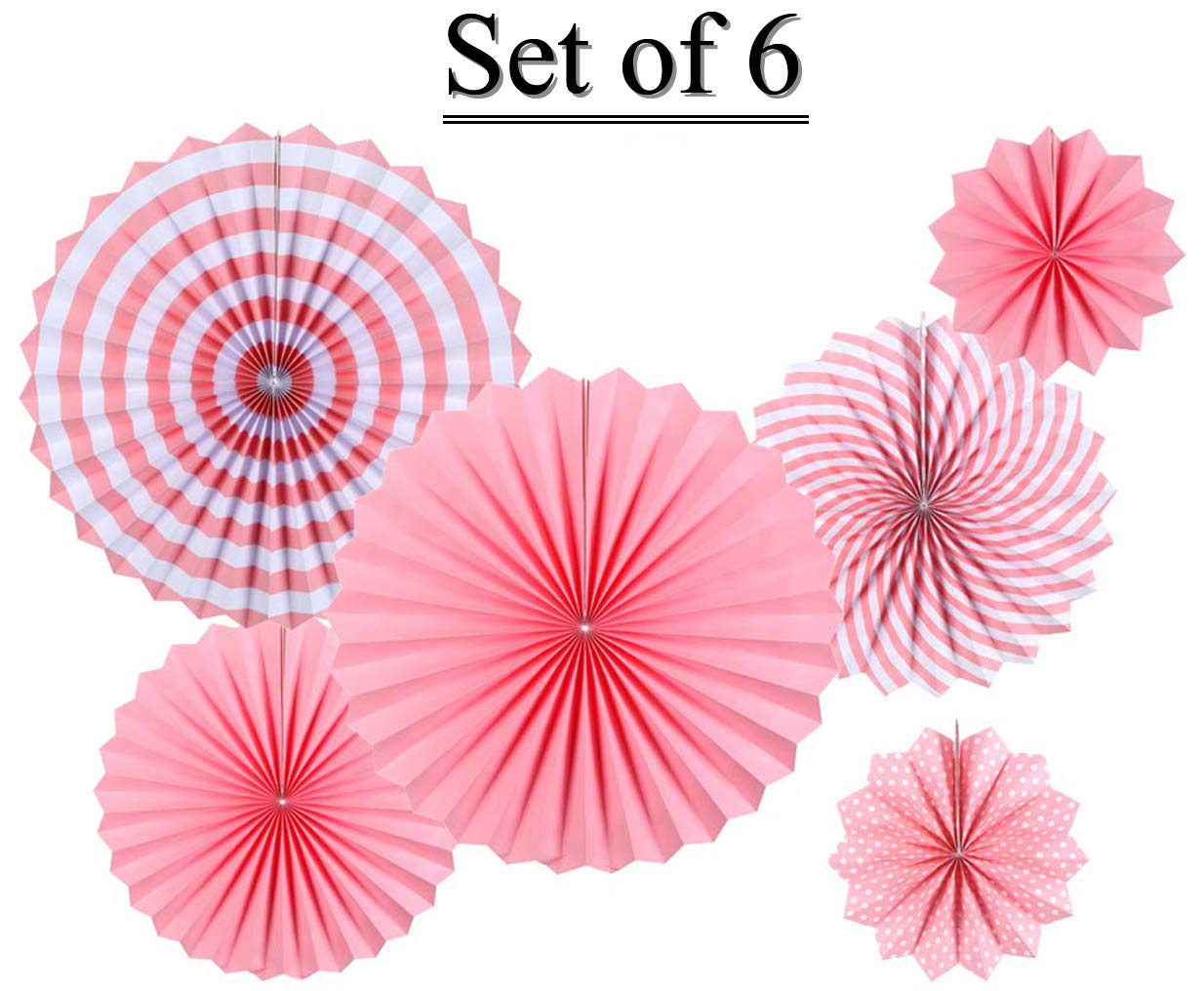 Paper Fans For Decoration Birthday Party Trend Party Fan For Wedding Birthday Showers - Pink And White (Pack Of 6)