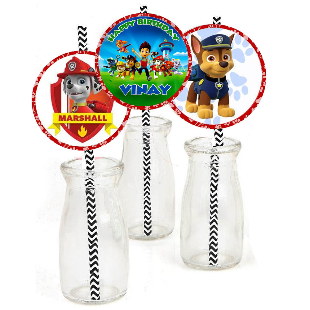 - Paw Patrol straw décor will add a touch of style to your birthday party tables. Straw décor will also look great at your beverage table.