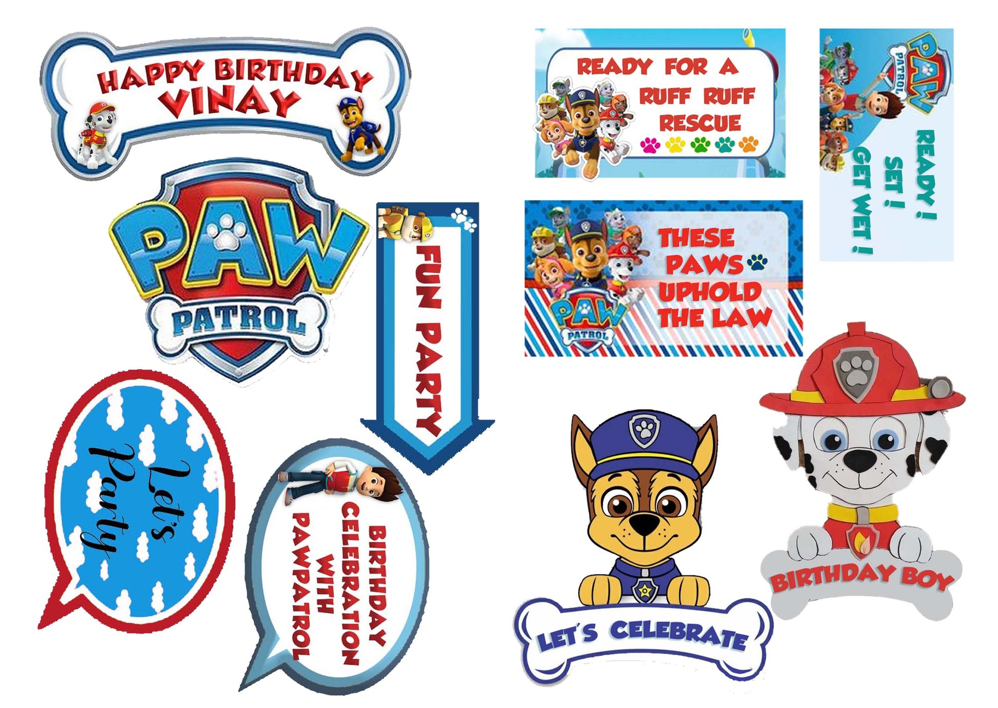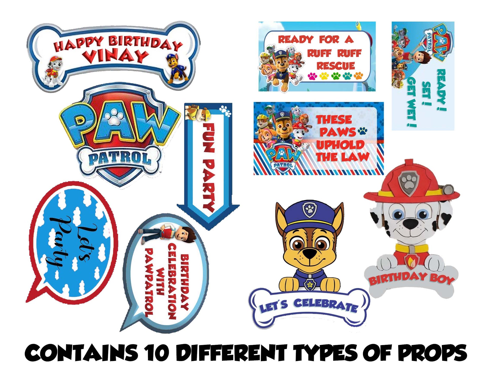 - Paw Patrol Theme photo prop pack accompanies ten pieces and will add fun for kids and adults. Take entertaining party photos while making memories with these photo booth props. Everyone will adore the fun photographs they will make with these excellent props.