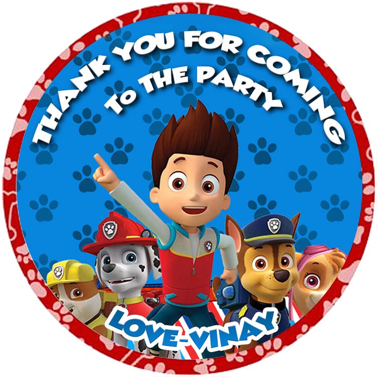 Paw Patrol Theme Birthday Party Thank You Gift Tags