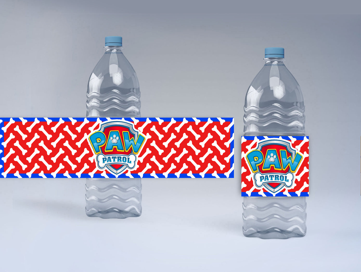 Paw Patrol Theme Birthday Party Water Bottle Labels