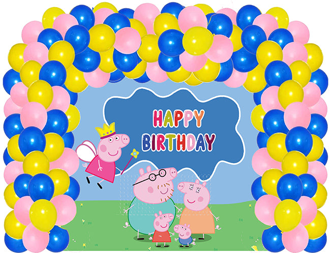 Peppa Pig Theme Birthday Party Decoration kit with Backdrop & Balloons