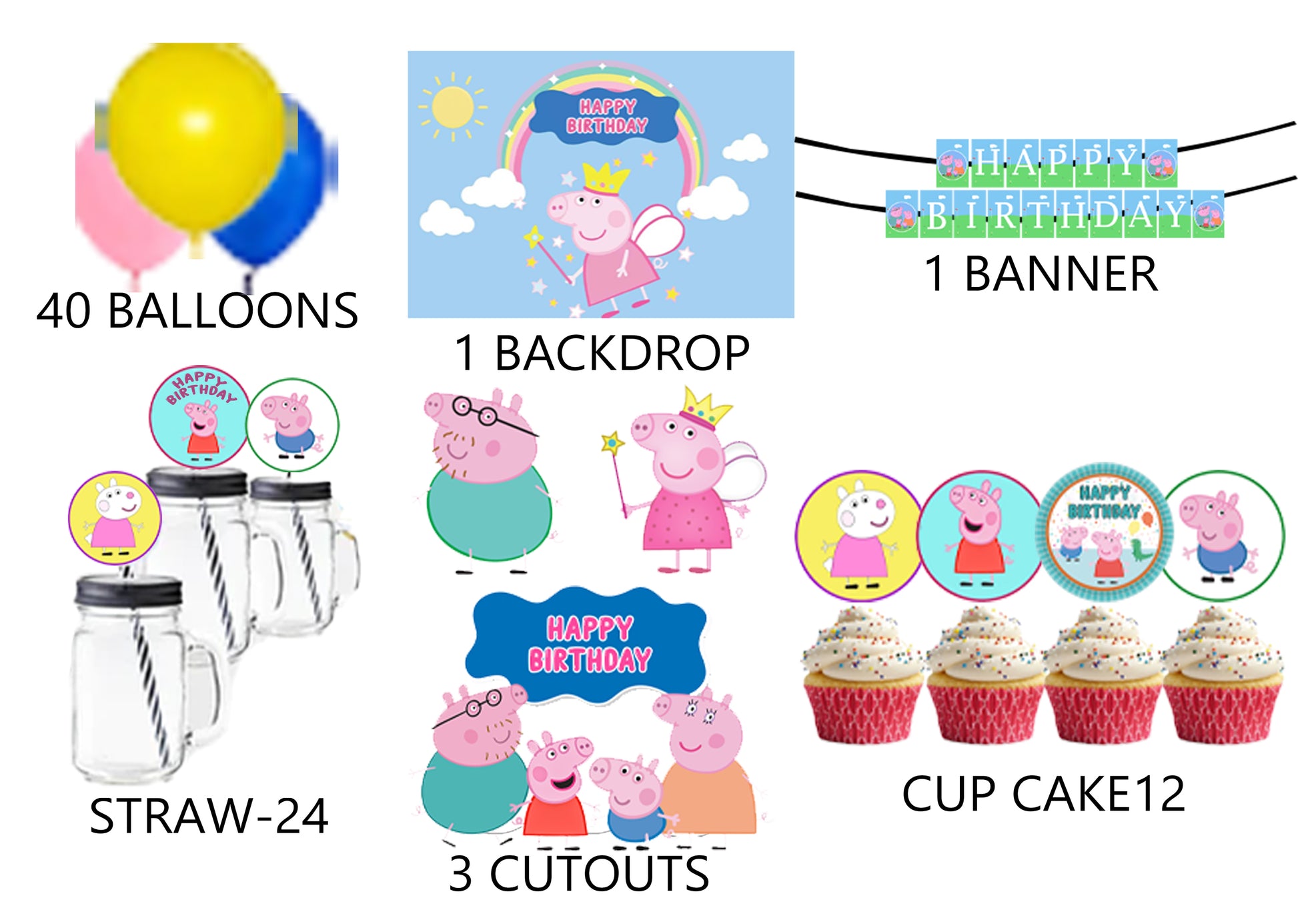 Peppa Pig Theme Birthday Party Combo Kit with Backdrop & Decorations