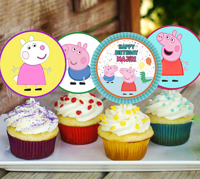 Peppa Pig Theme Cup Cake Topper specially designed with three different designs.