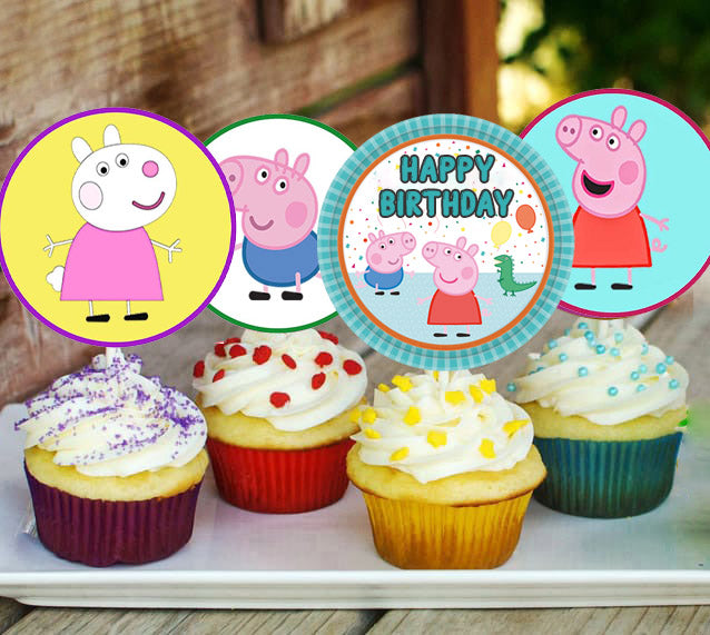 Peppa Pig Theme Birthday Party Cupcake Toppers for Decoration