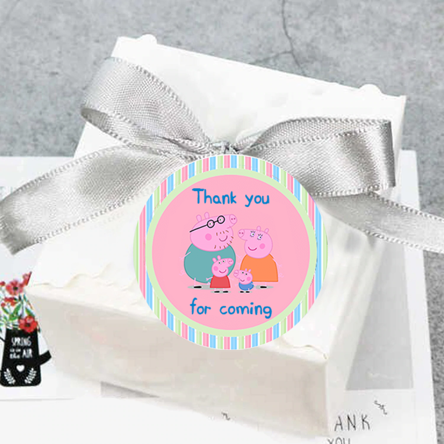 - The package includes - 20 Peppa Pig Theme thank you tags and a ribbon.
