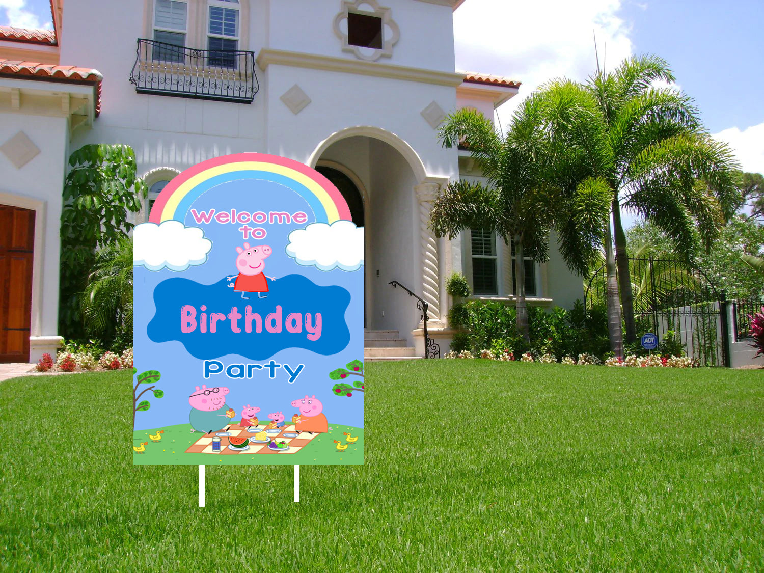 • The Peppa Pig theme Welcome board sign is ideal for any home location or outside space. Welcome your friends and family members with a stunning welcome birthday party board.
