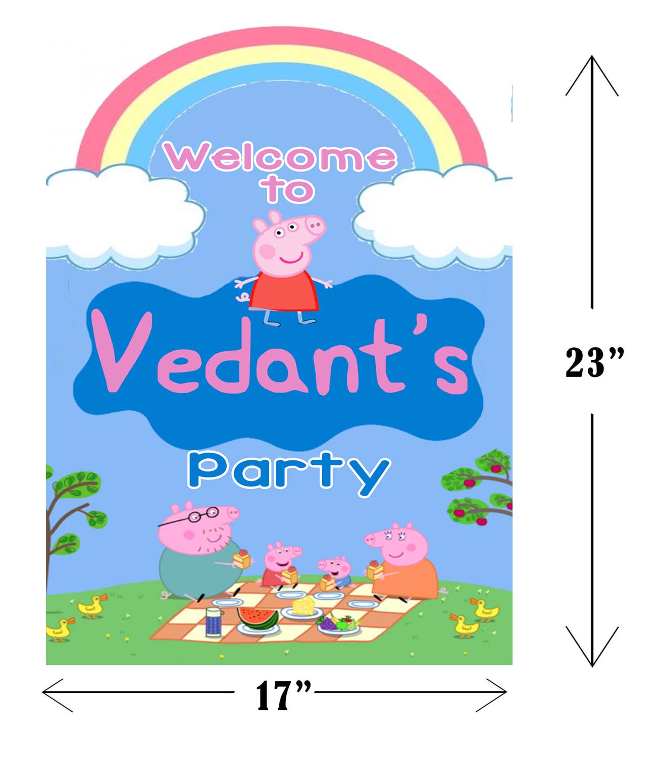 Material: - Peppa Pig theme welcome signboard is made of high-quality vinyl print pasted on a 3mm sun board.