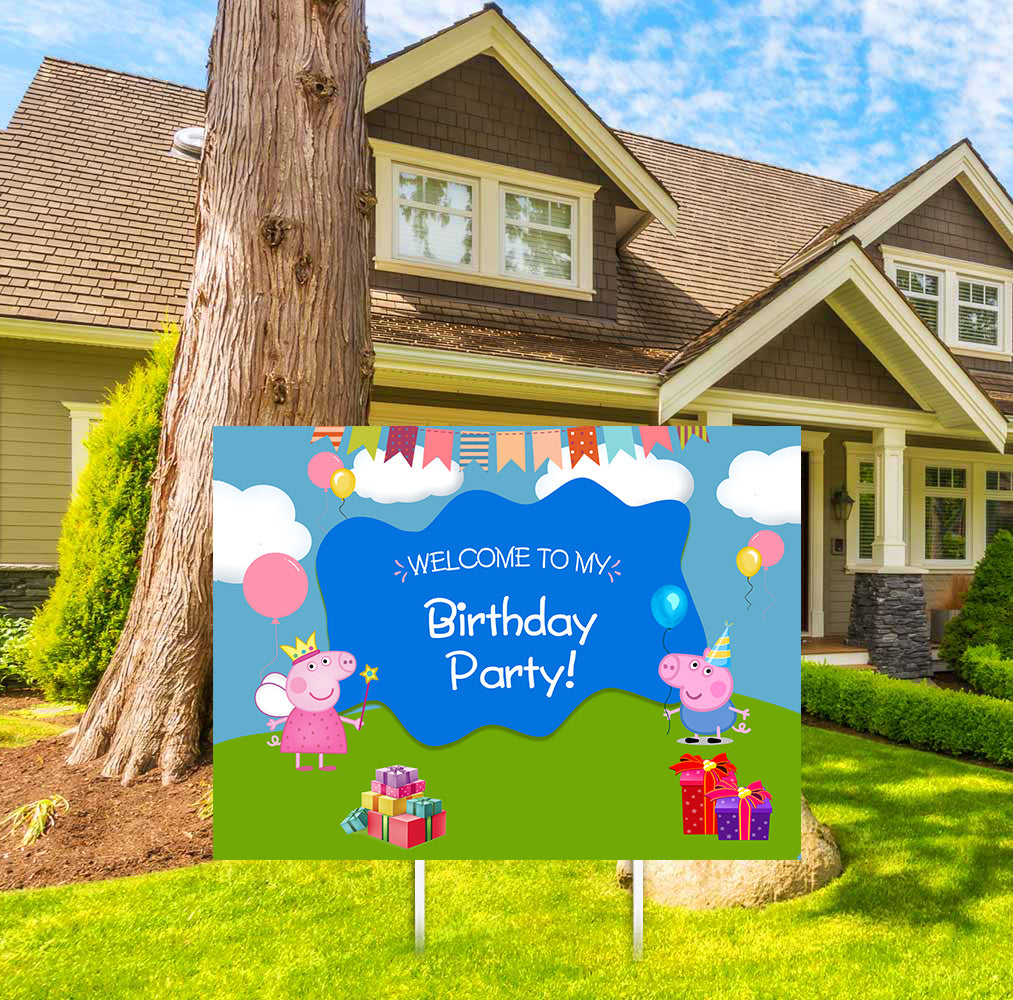 Material: - Peppa Pig theme welcome signboard is made of high-quality vinyl print pasted on a 3mm sun board.