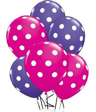 - Pink and Purple balloons Made of latex with all-over print of white polka dots