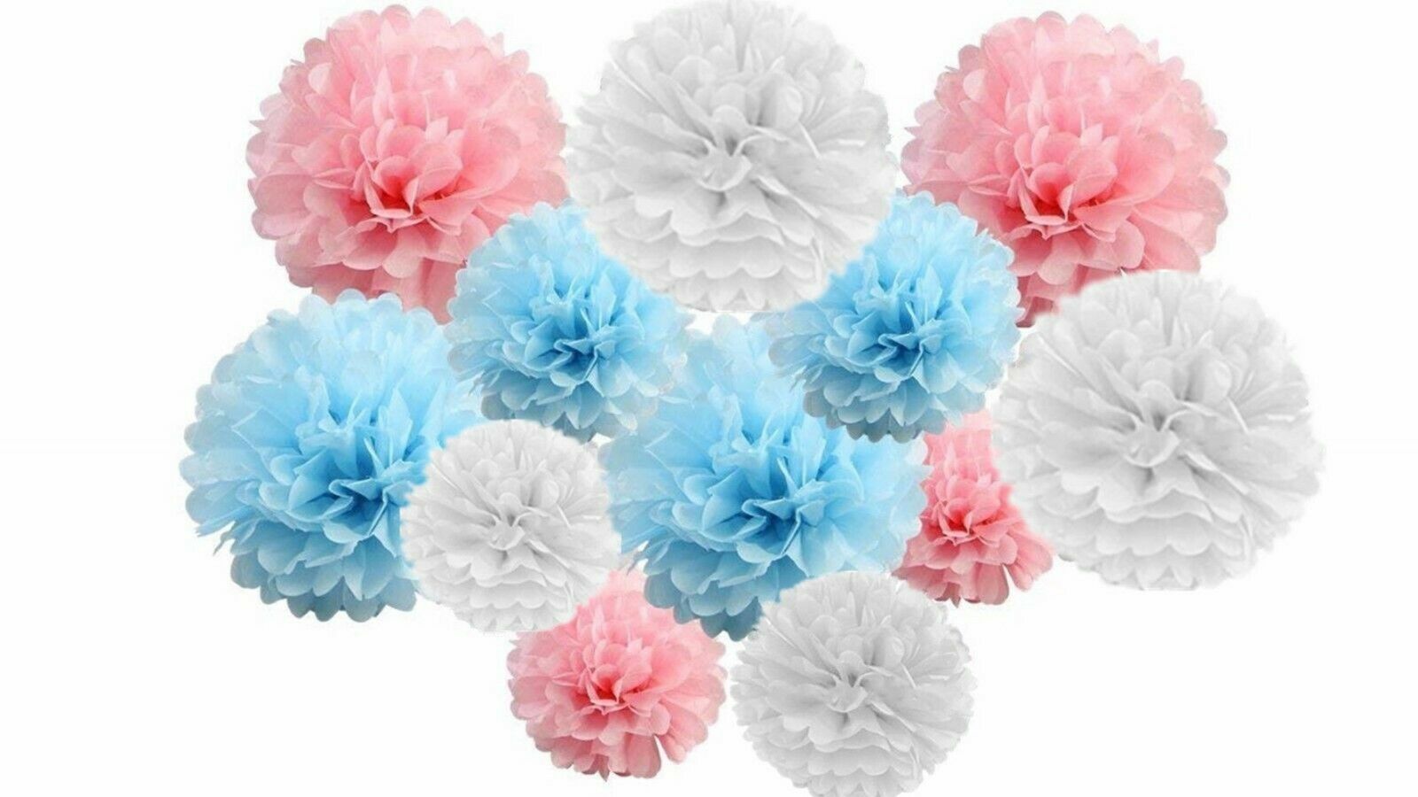 Pink Blue And White Pom Pom Flower Decoration -Baby Shower
