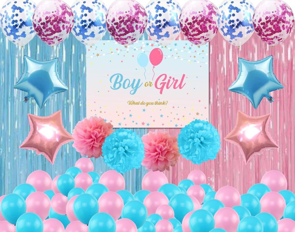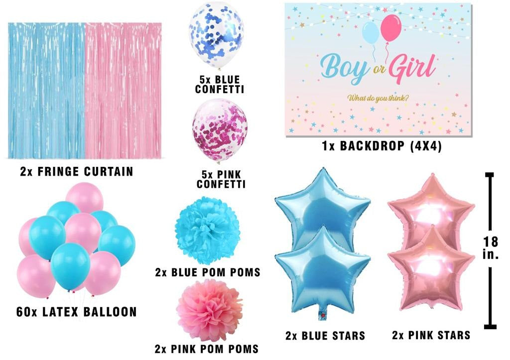 - Package includes - Backdrop-flex material light and thin, Balloons- 60 pcs Metallic 20 pc each green dark green and purple and six pc Pompom (3 pc each Purple and Green) and six pc paper Lantern (3 pc each Purple and Green). All of the kits are useful for Pink Or Blue parties.