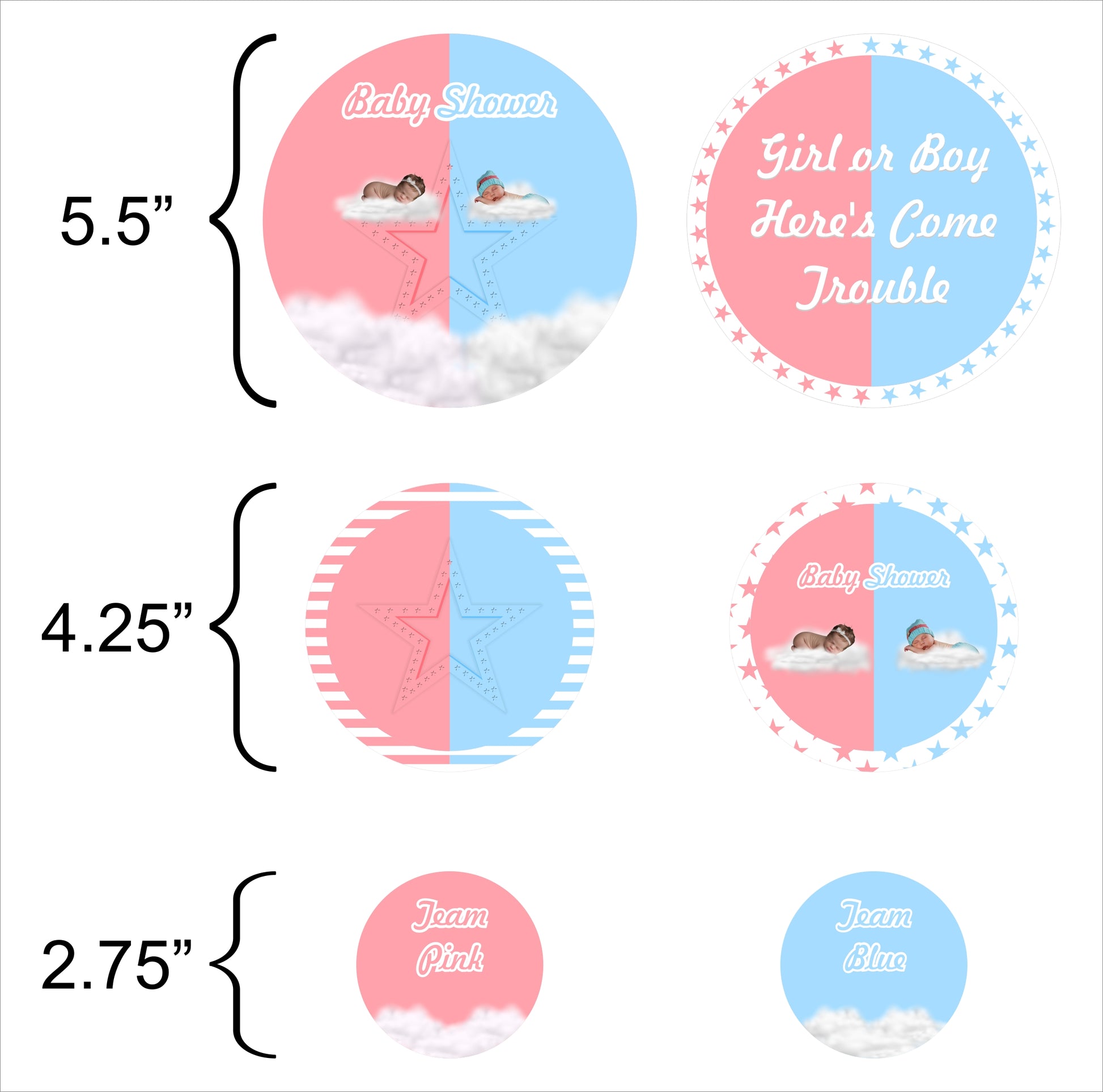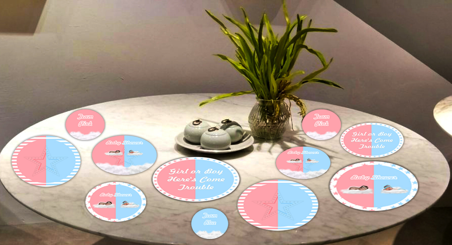 - Pink Or Blue Party table confetti can be utilized or dispersed on the tables or hung together to make a pleasant banner. You can use them as Party Gift tags.