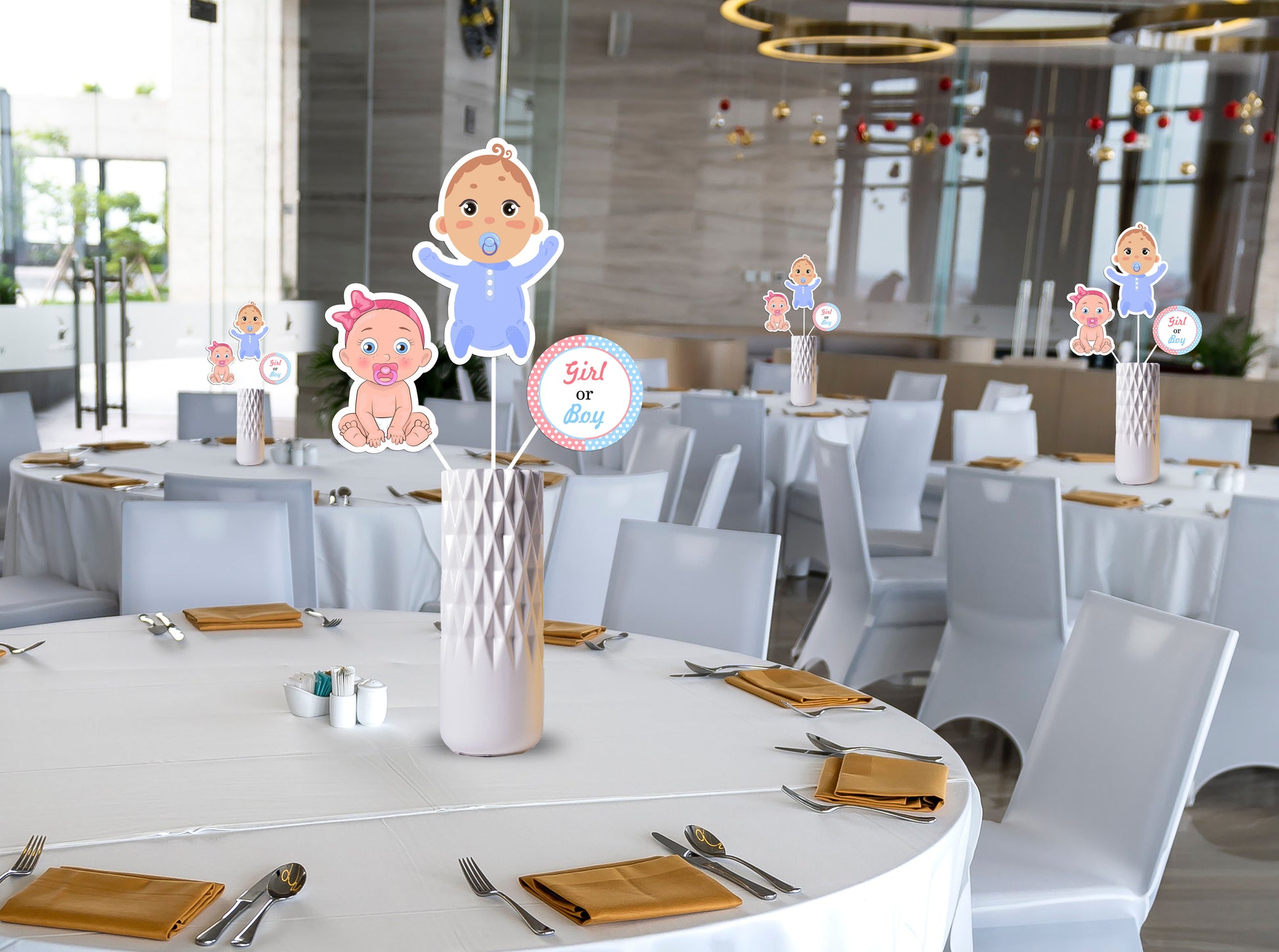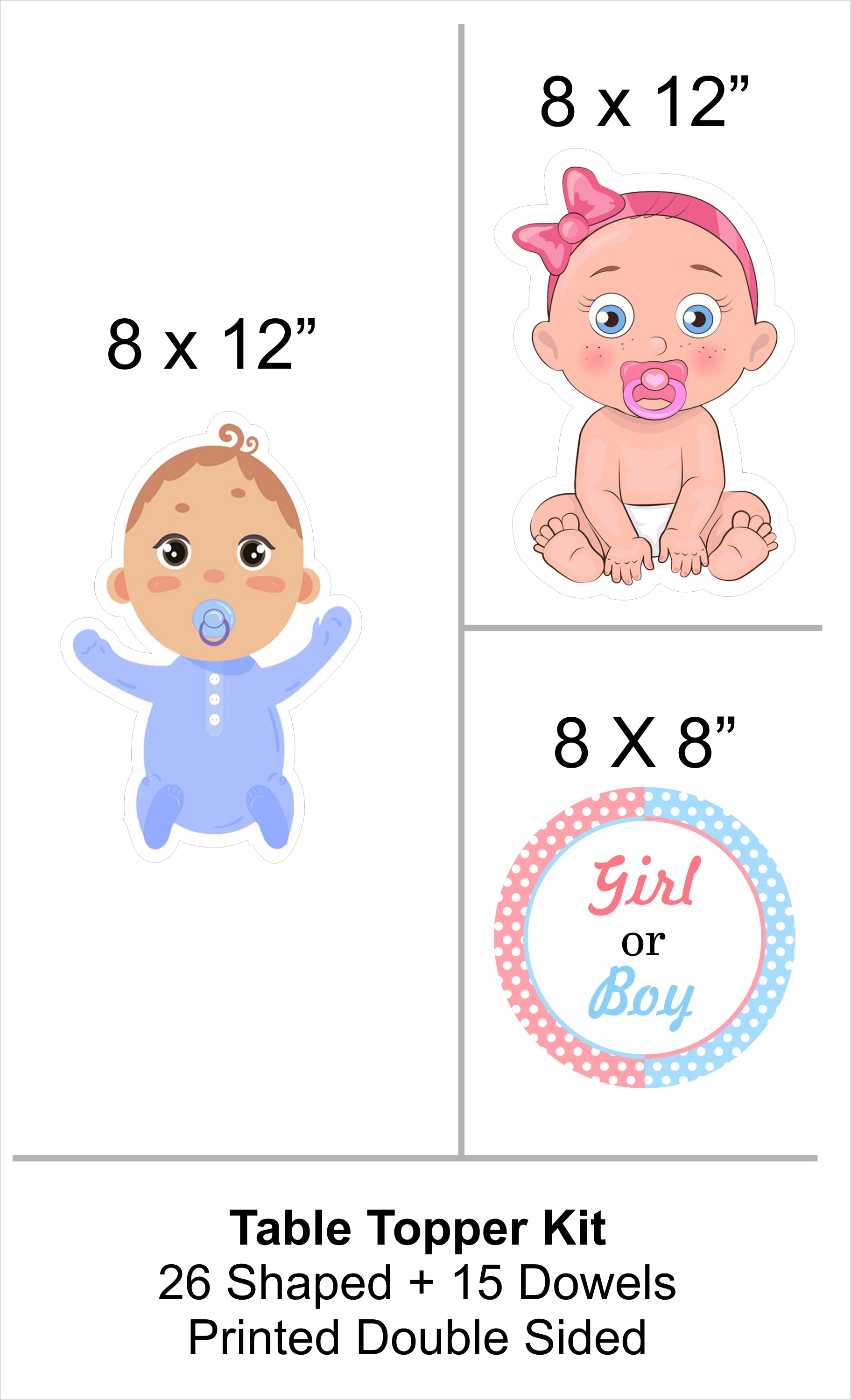 - Create easy centerpieces with our Pink Or Blue Party DIY Table Toppers, specially designed in 3 different designs.