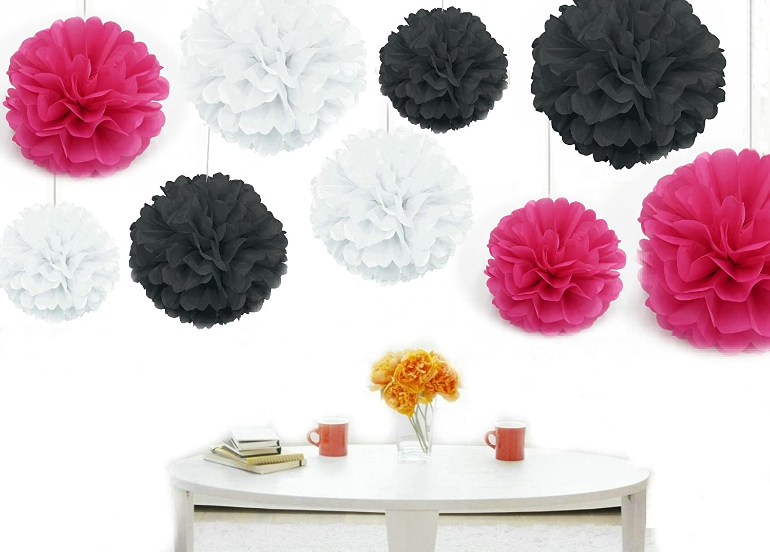 Pink White And Black Pom Pom Flower Decoration -Anniversary Parties & Milestone Birthday,Bachelor Parties
