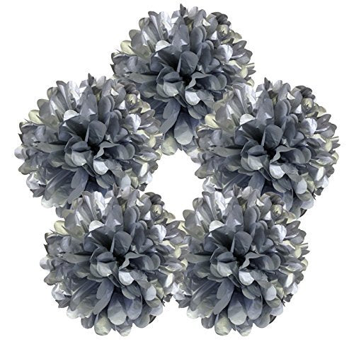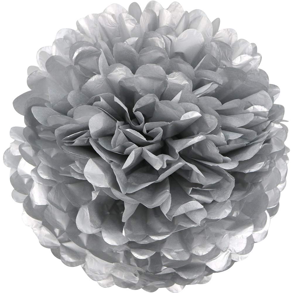 - Silver paper hanging decorations Package Include: 5 pcs Silver tissue paper pom poms 12 inch each