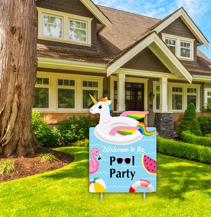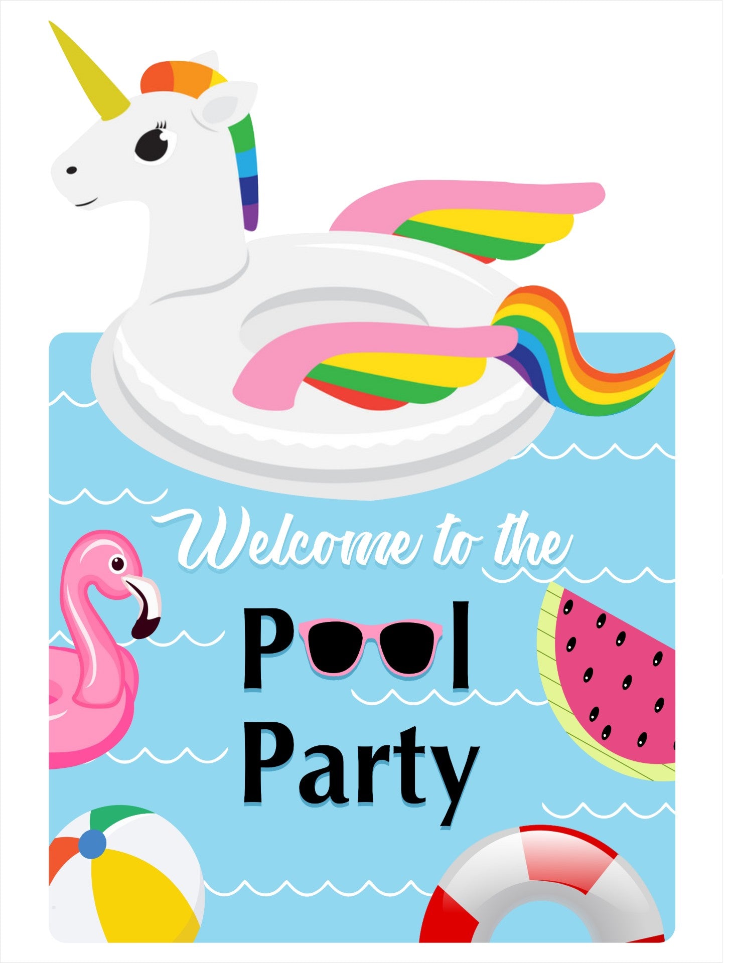 The Pool theme Welcome board sign is ideal for any home location or outside space. Welcome your friends and family members with a stunning welcome birthday party board.