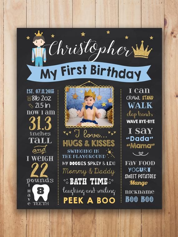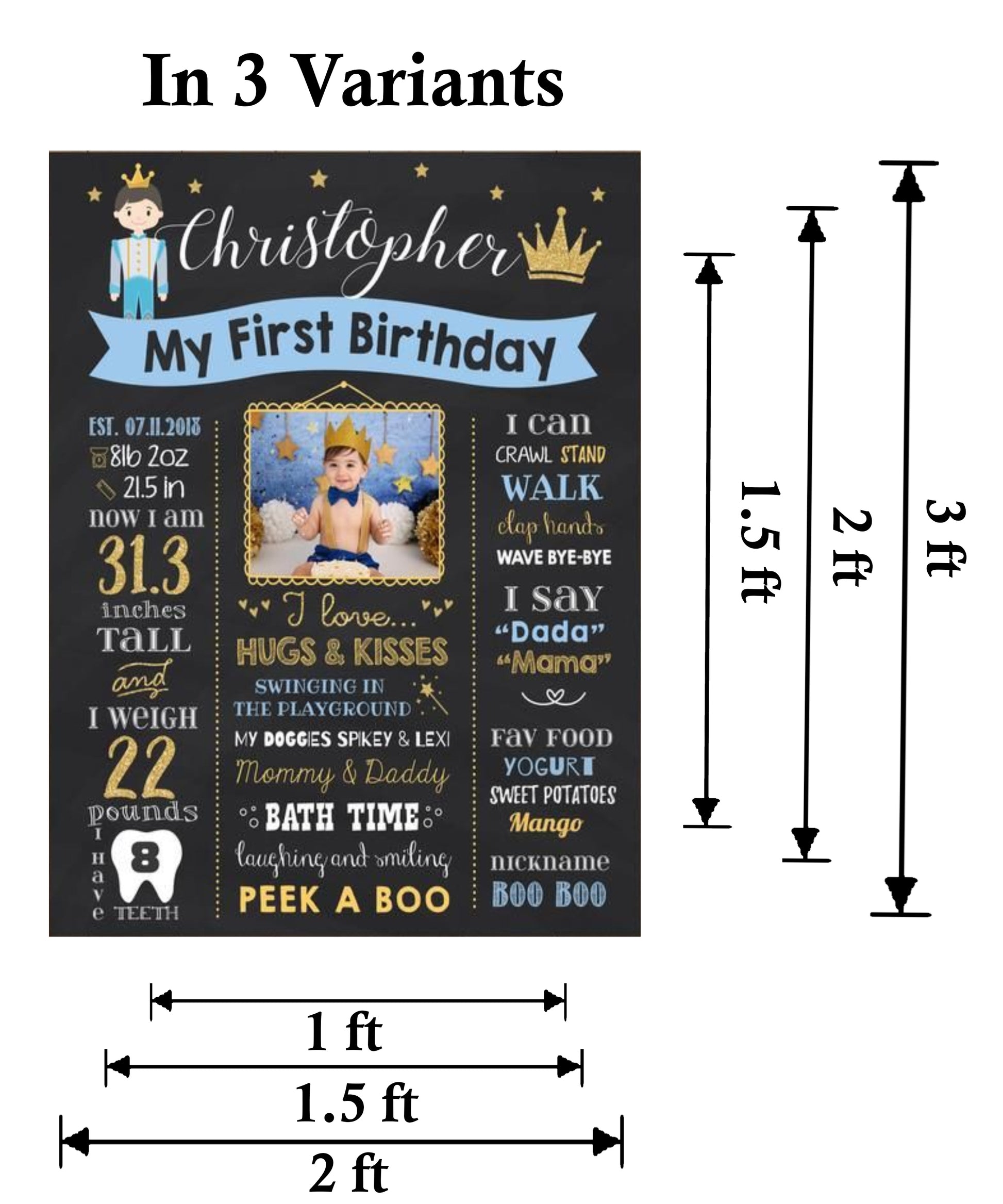 Prince Theme Customized Chalkboard Milestone Board for Kids Birthday Party
