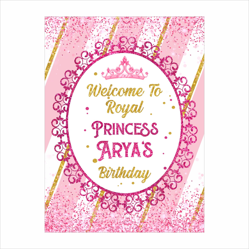 - The Princess Birthday theme Welcome board sign is ideal for any home location or outside space. Welcome your friends and family members with a stunning welcome birthday party board.
