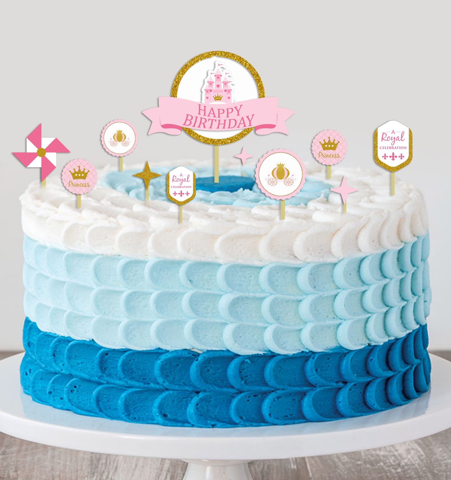 - How to use: - Include Princess Birthday Theme Cake toppers to your treat table to make an extraordinary theme cake show. Style the big cake topper with the two huge picks and add one small selection to each of the ten cut-out shapes to finish the cake embellishment.