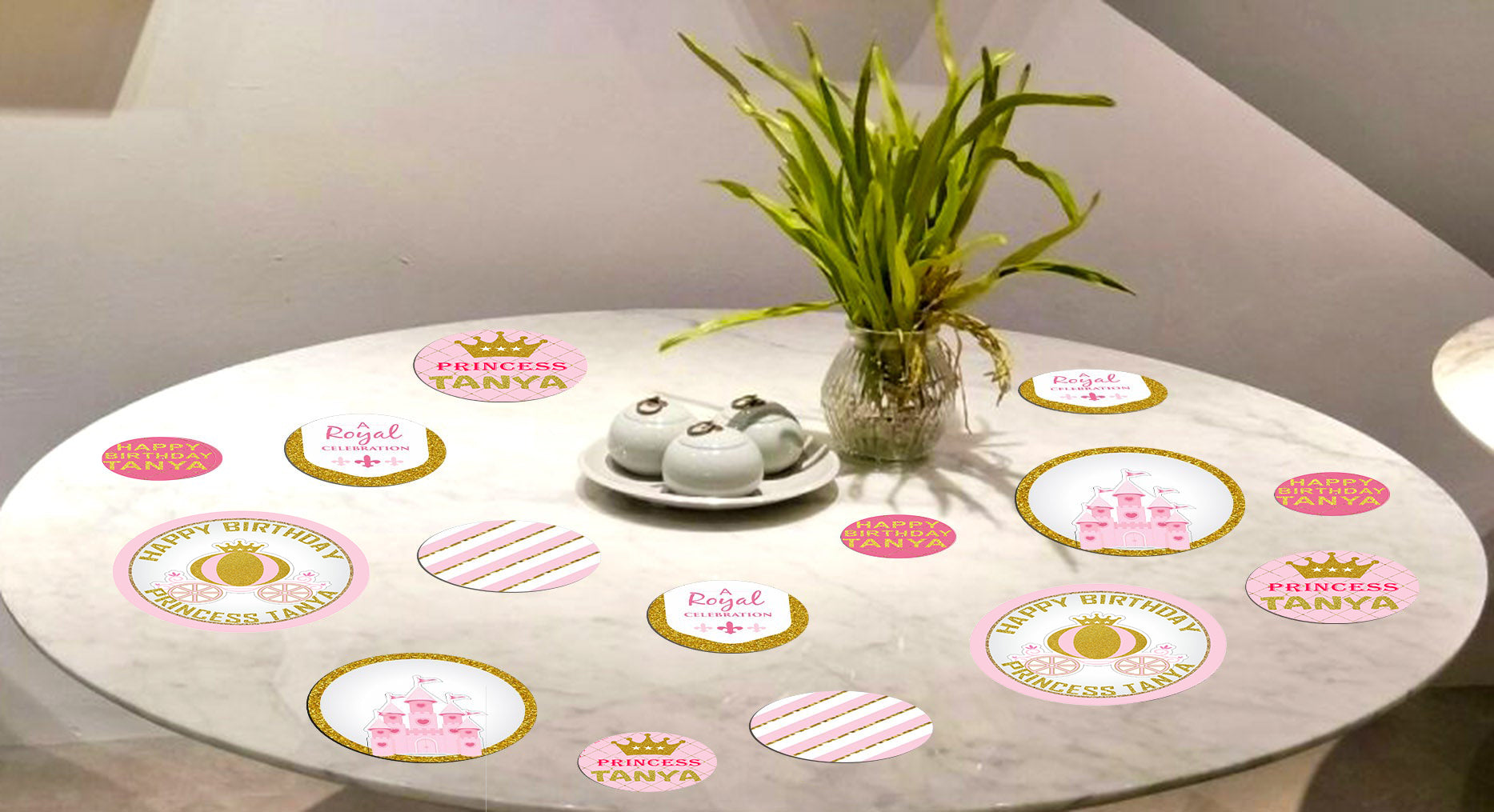 Princess Theme Birthday Party table confetti can be utilized or dispersed on the tables or hung together to make a pleasant banner. You can use them as Princess Party Gift tags.