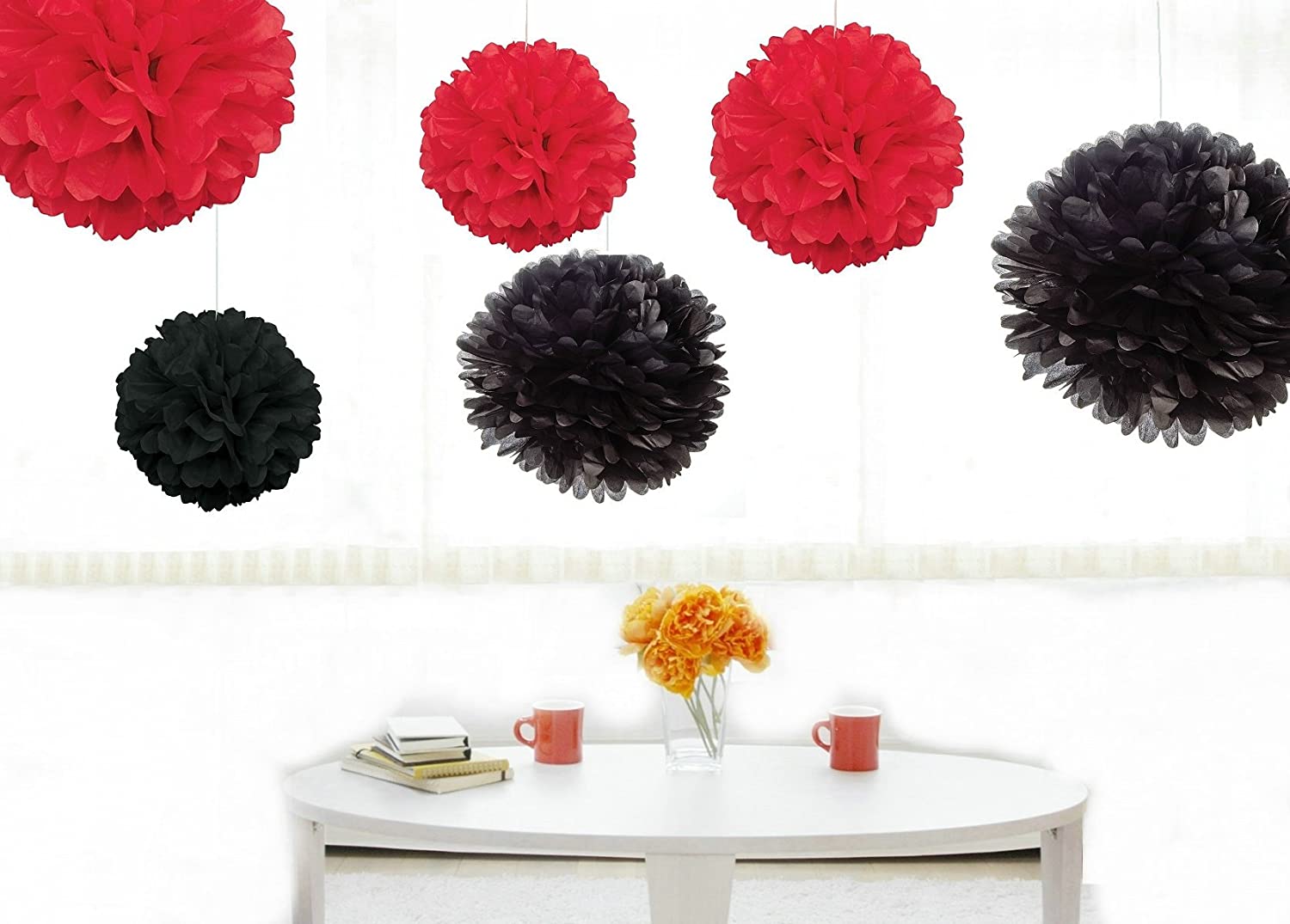 Red And Black Pom Pom Flower Decoration -Anniversary Parties & Milestone Birthday,Bachelor Parties,Car Racing ,Casino Theme