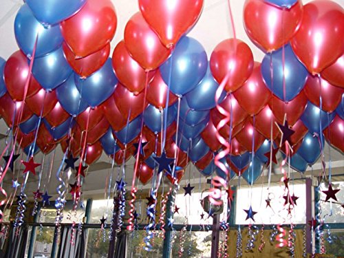 - 9 inch solid metallic Red and Blue balloons. The charming balloons are made of natural rubber latex and support helium and air excluded .