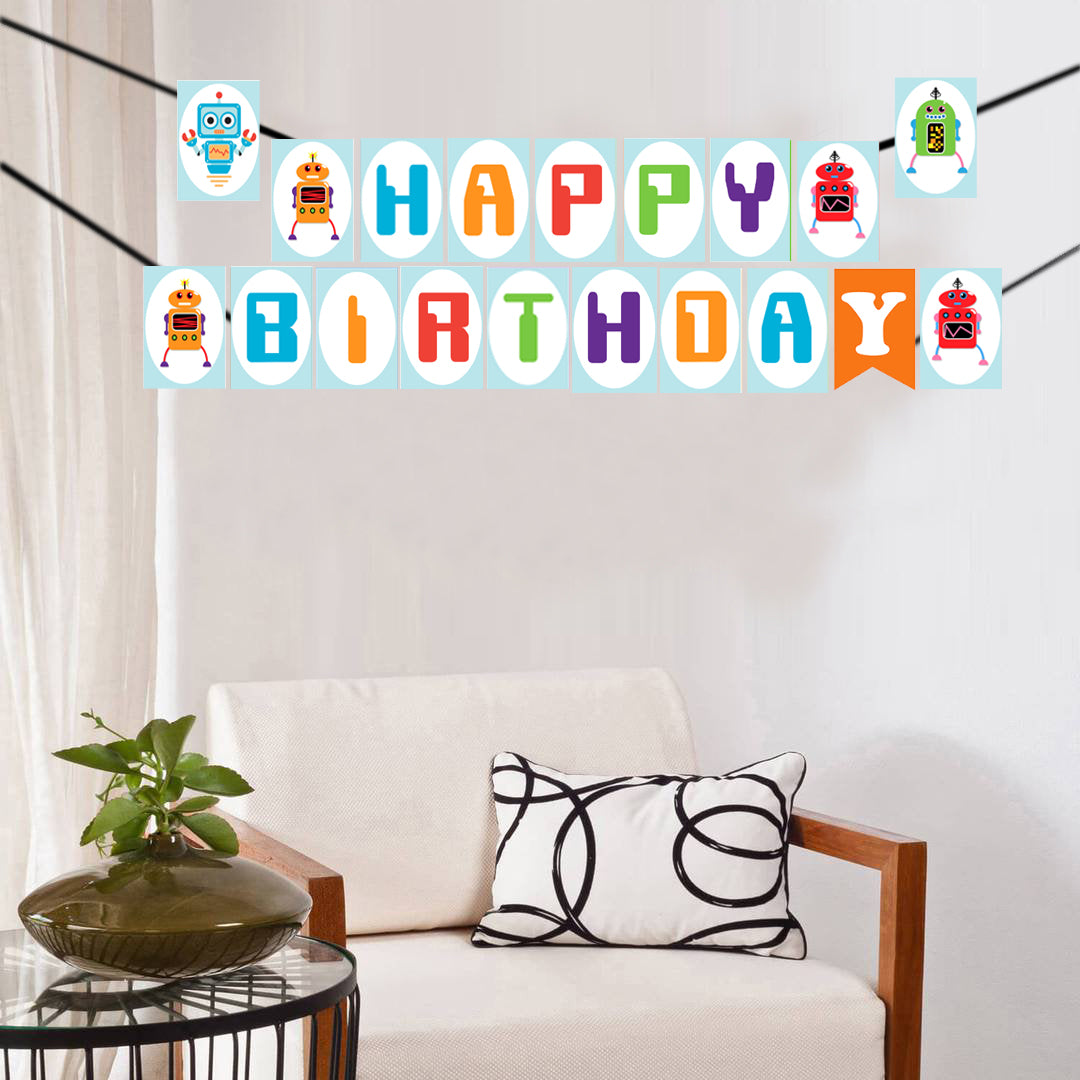 Robot Theme Birthday Party Banner for Decoration