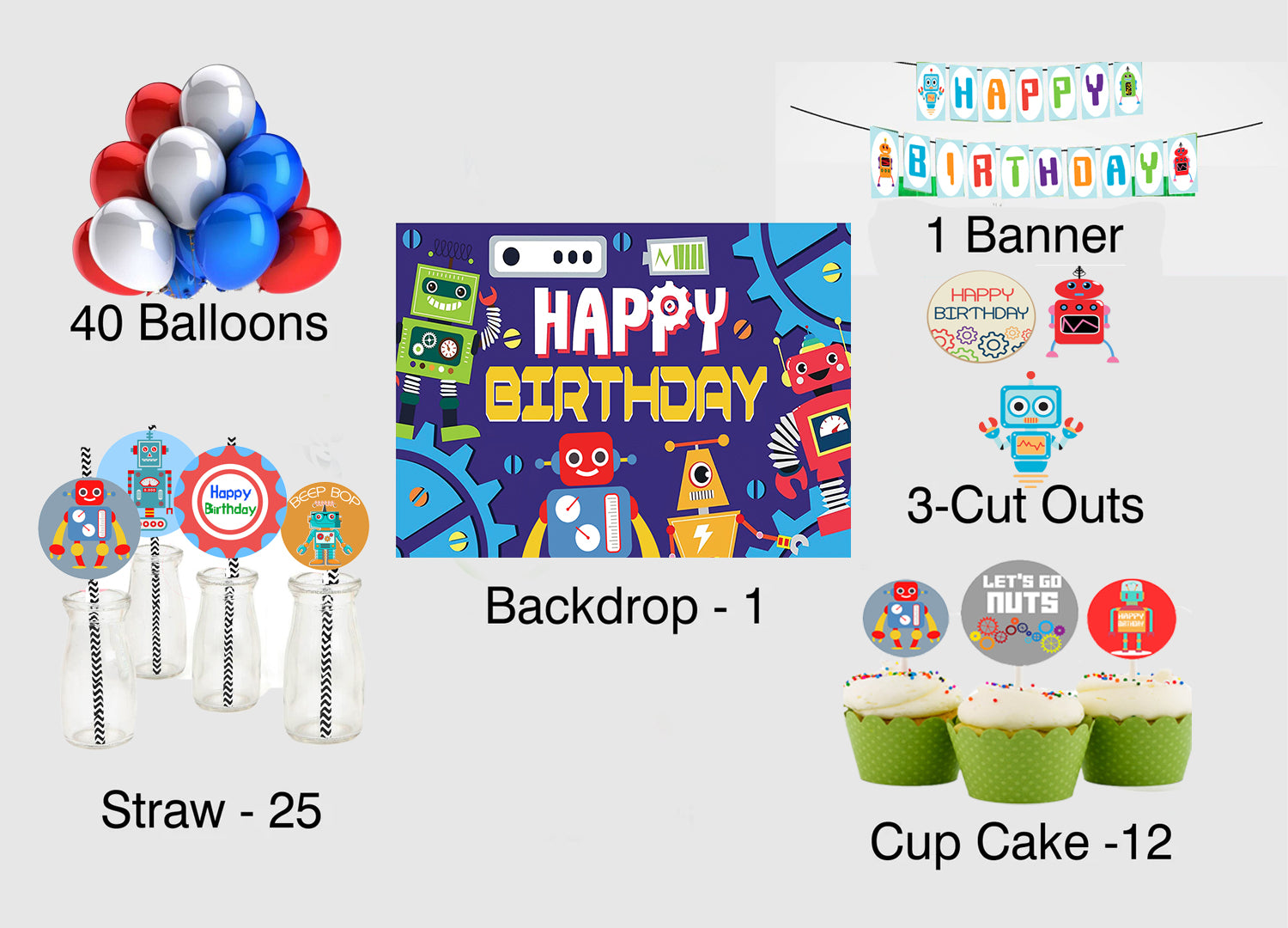 Robot Theme Birthday Party Combo Kit with Backdrop & Decorations