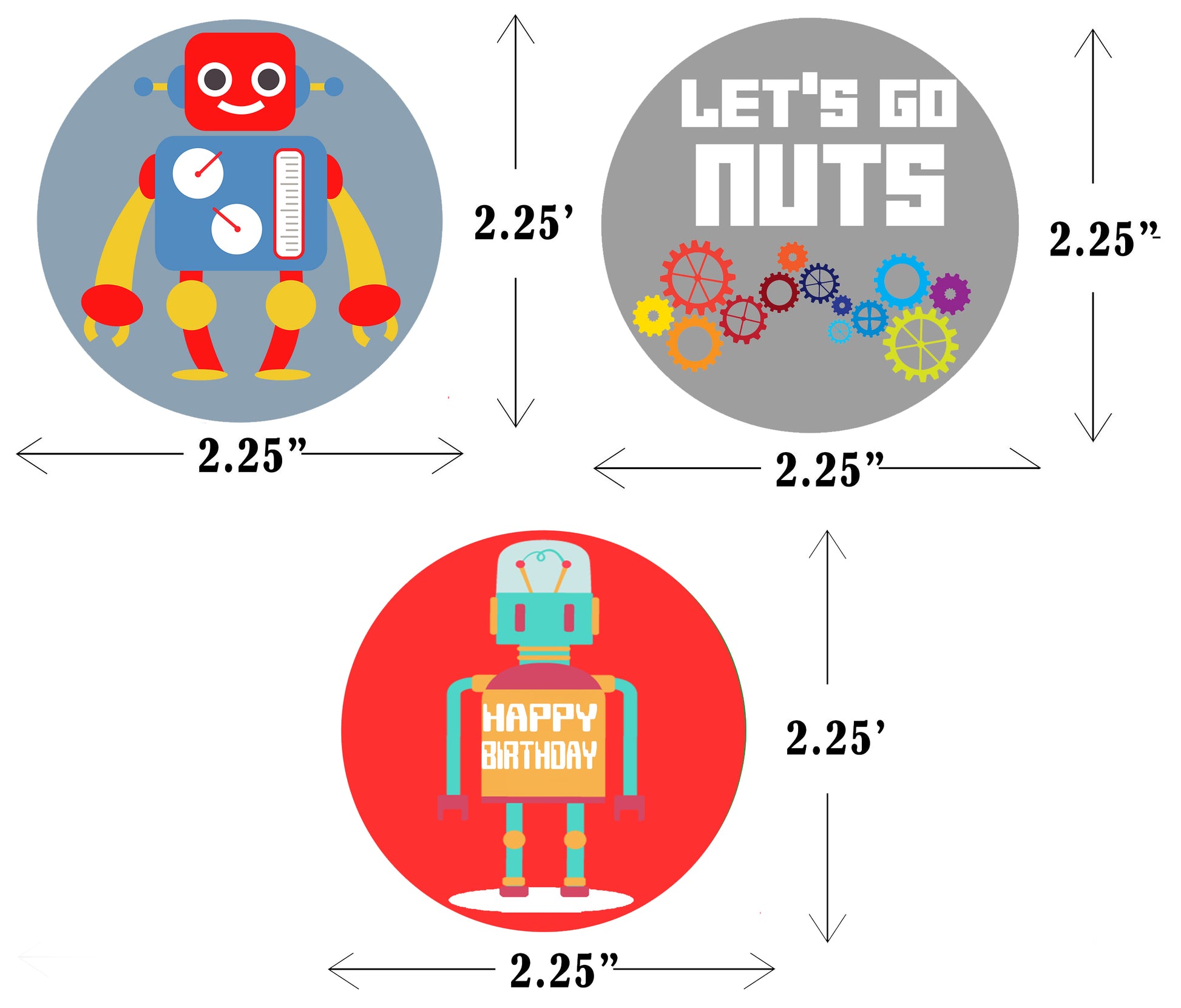 - Package Includes-12 Robot Cupcake Toppers in 4 Different Designs. Sticks and glue dot included to assemble.