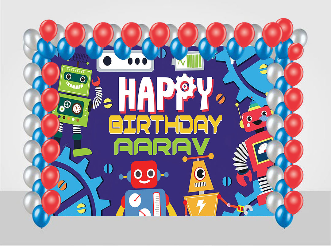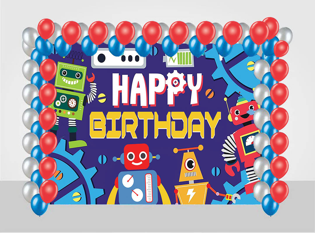 Robot Theme Birthday Party Decoration kit with Backdrop & Balloons