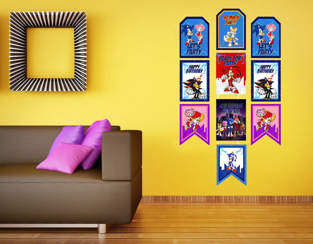 Sonic Theme Birthday Paper Door Banner for Wall Decoration