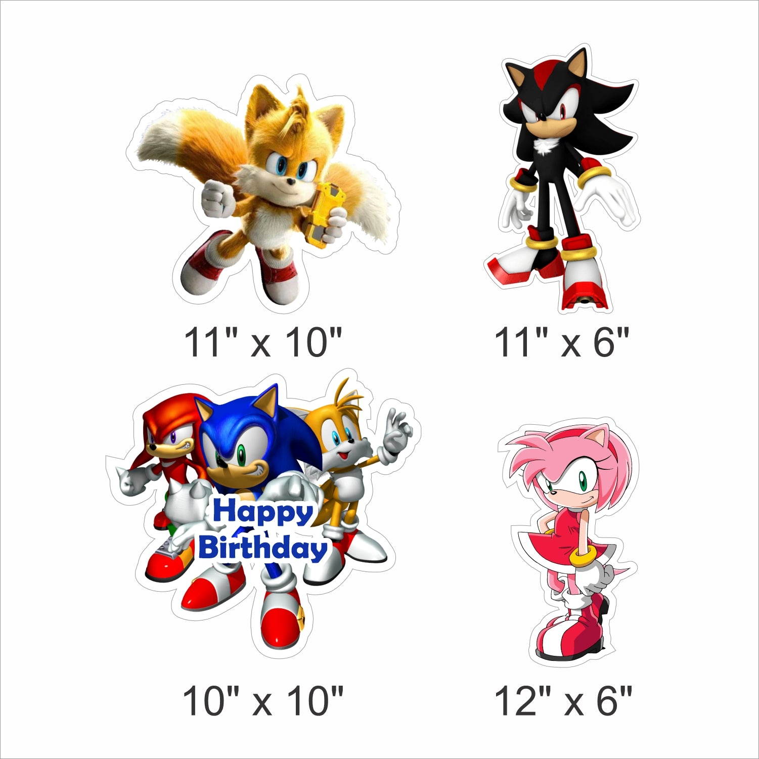 - Package Includes: - 4 Sonic theme different pattern cut-outs with different sizes varies between 1ft -2ft approx.