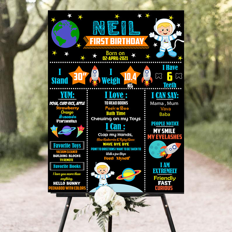 Space Party Theme Customized Chalkboard/Milestone Board for Kids Birthday Party