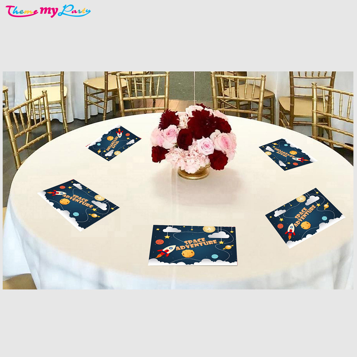 Space theme birthday party table mats will delight all of your guests. Add these themed table mats to make a remarkable table setting.