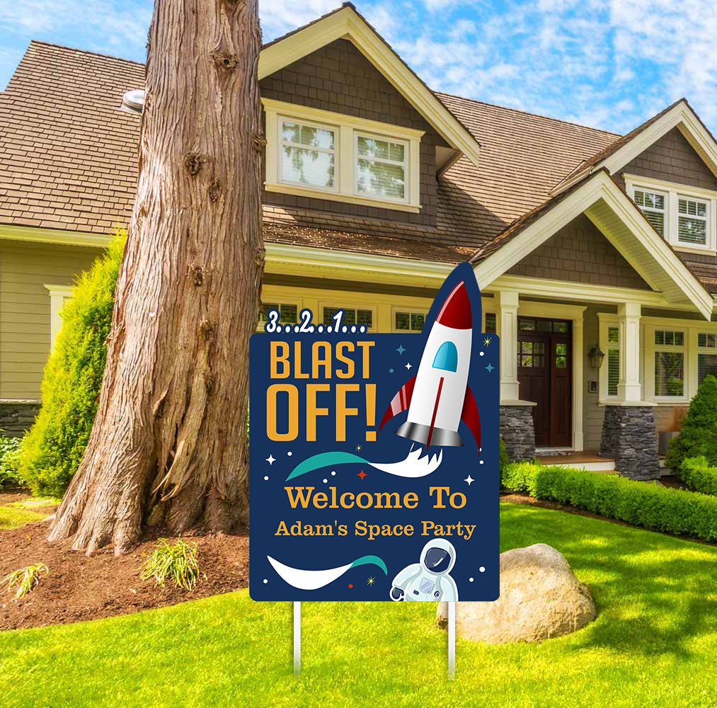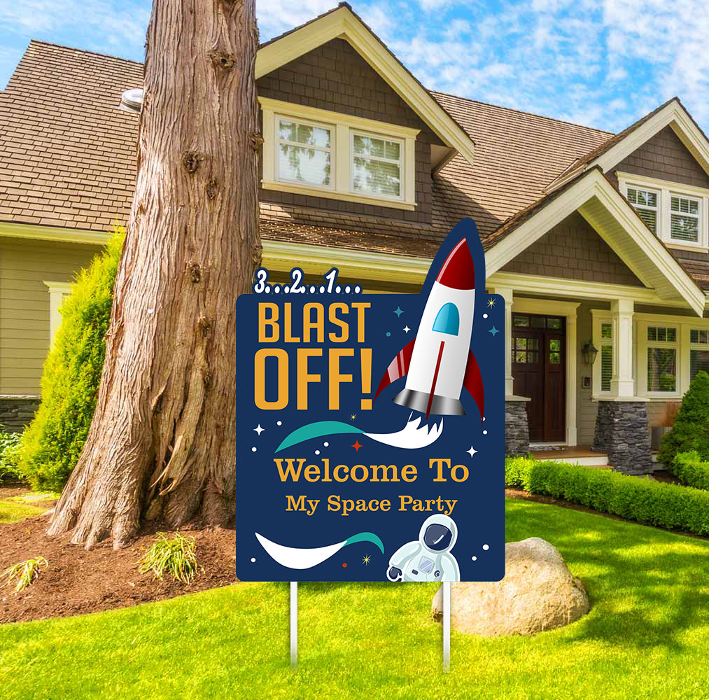 The space theme Welcome board sign is ideal for any home location or outside space. Welcome your friends and family members with a stunning welcome birthday party board.