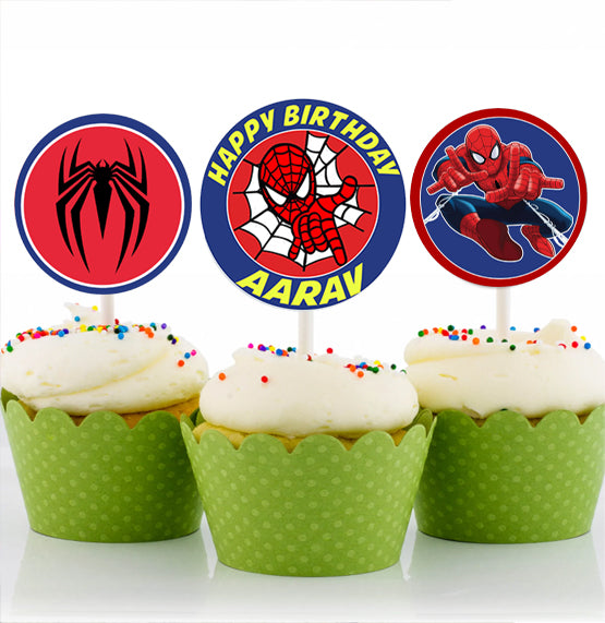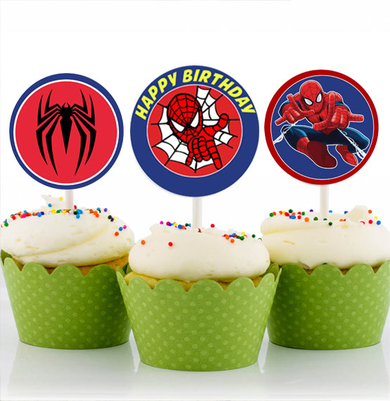 Spiderman Theme Birthday Party Cupcake Toppers