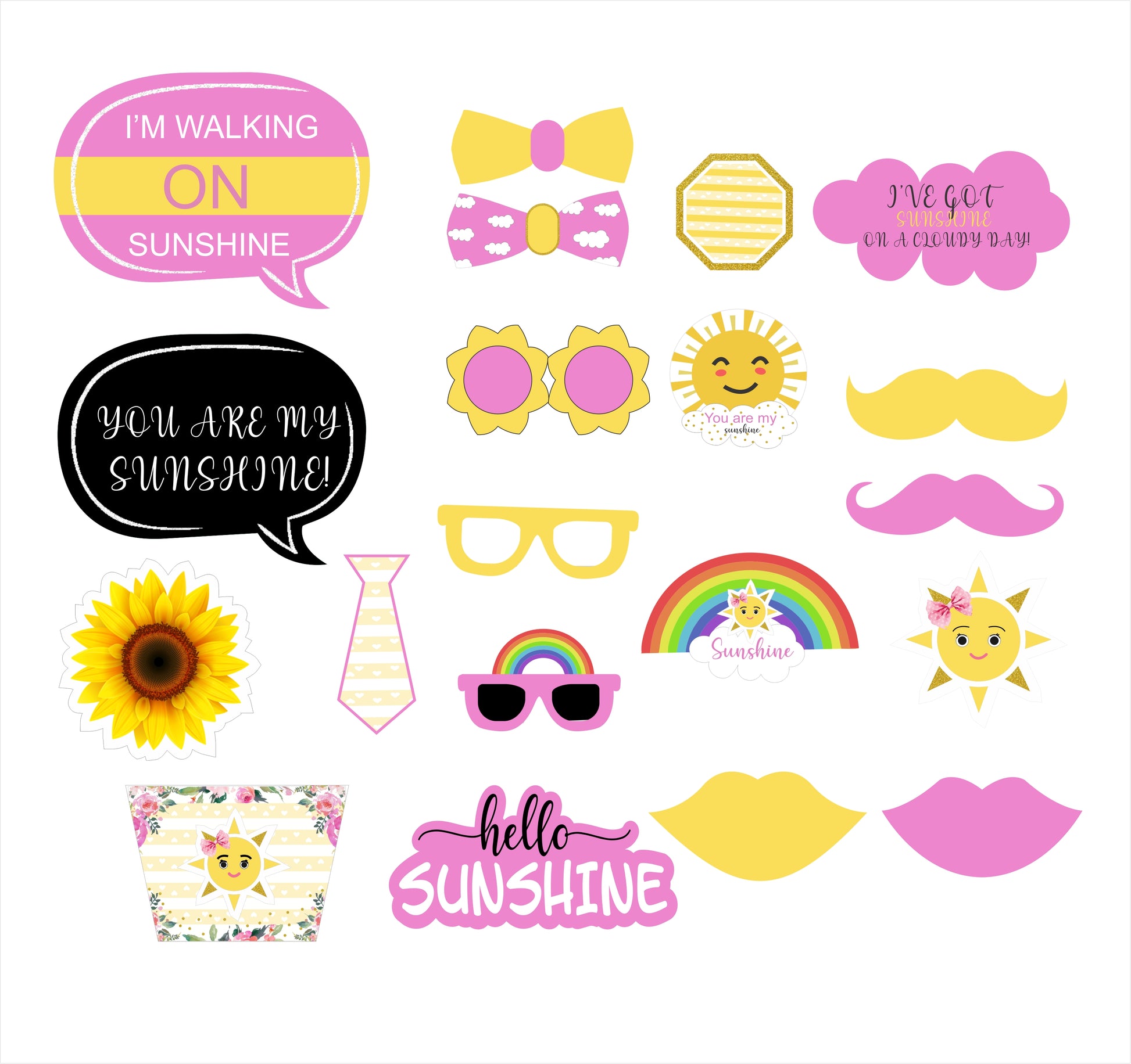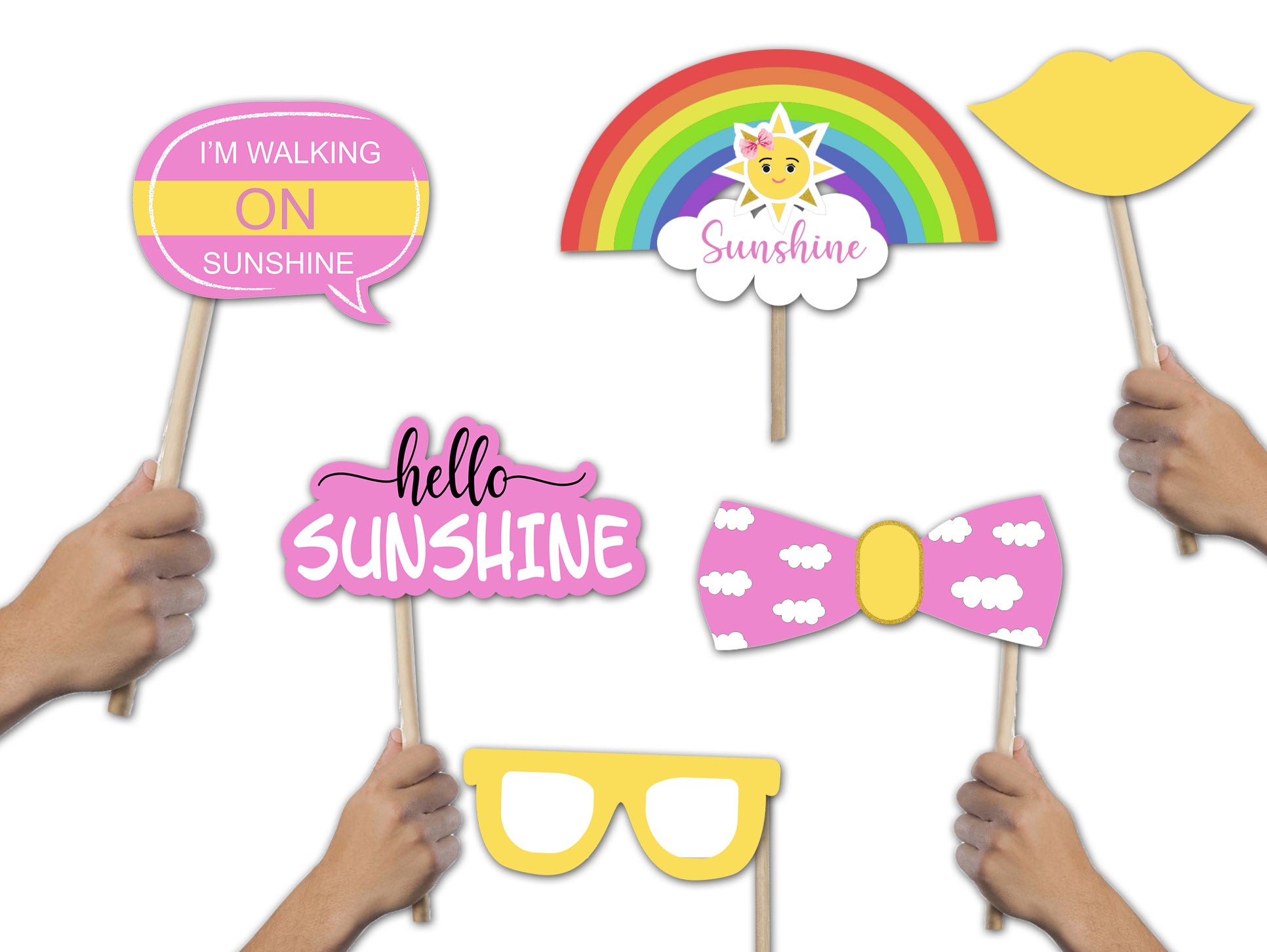 - Material: - Sunshine Theme photo booth props are printed on thick card stock paper.