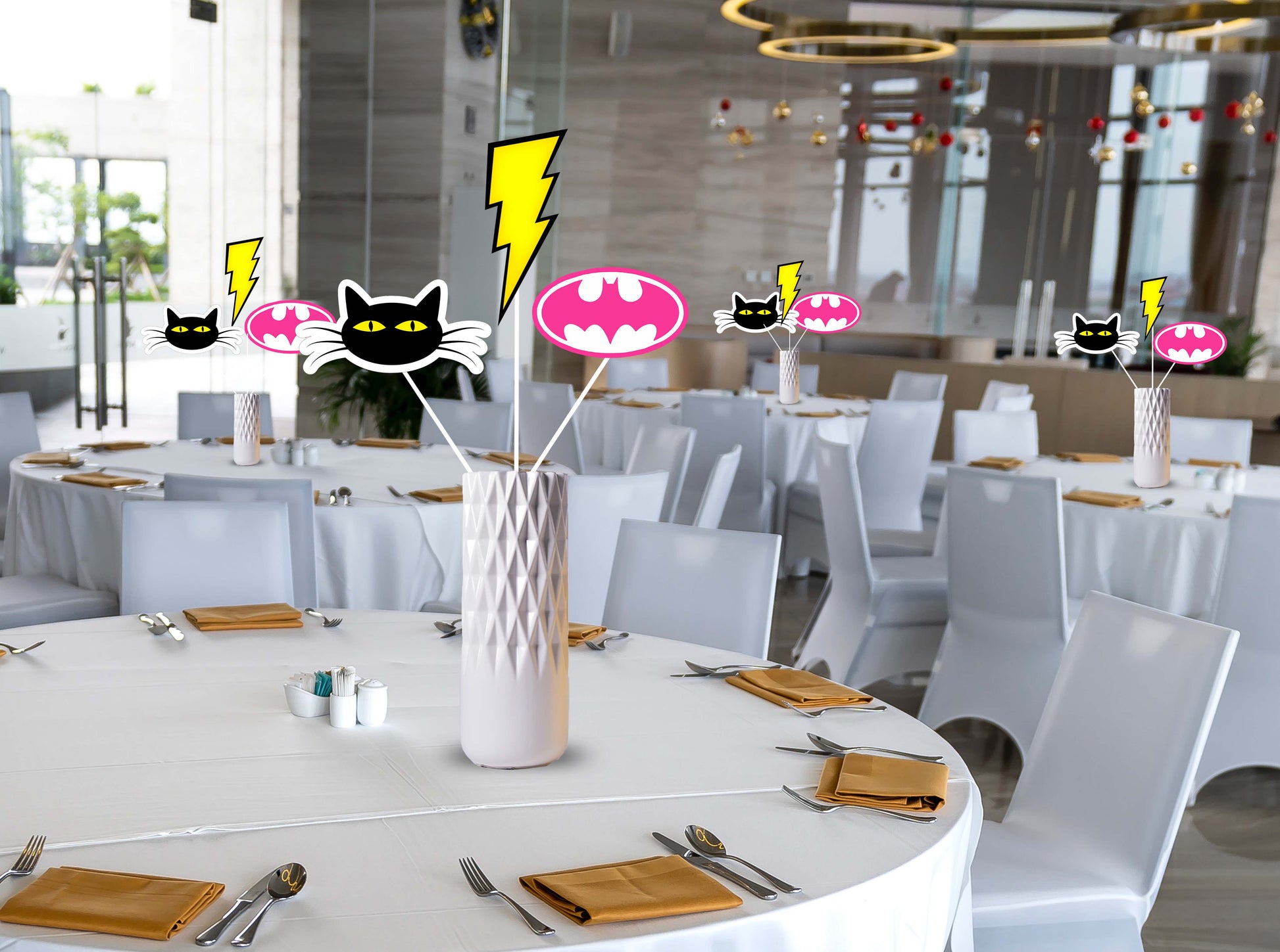 Create easy centerpieces with our Super Girl Theme Party DIY Table Toppers, specially designed in 3 different designs.