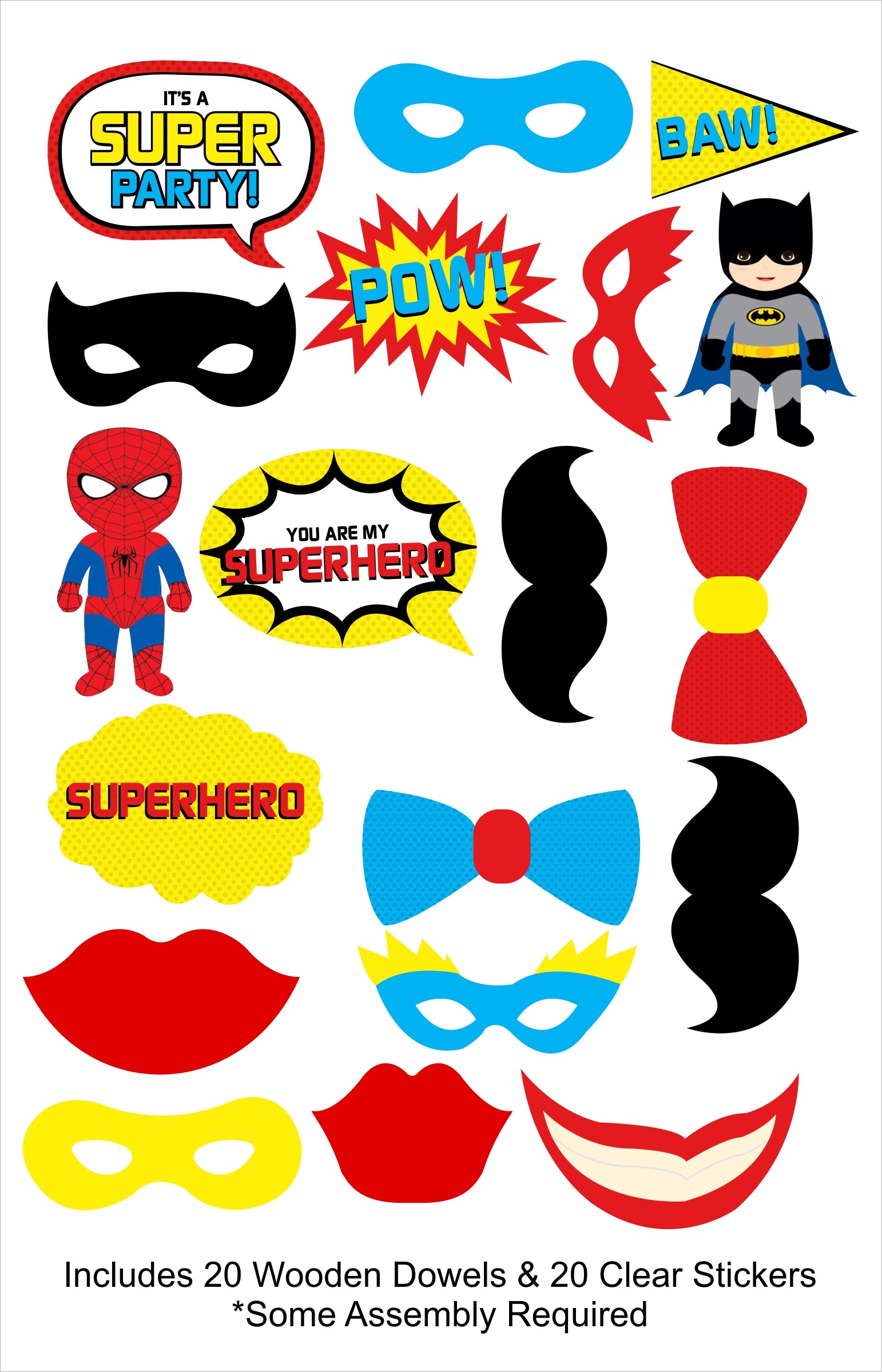 Super Hero Theme Birthday Party Photo Booth Props Kit