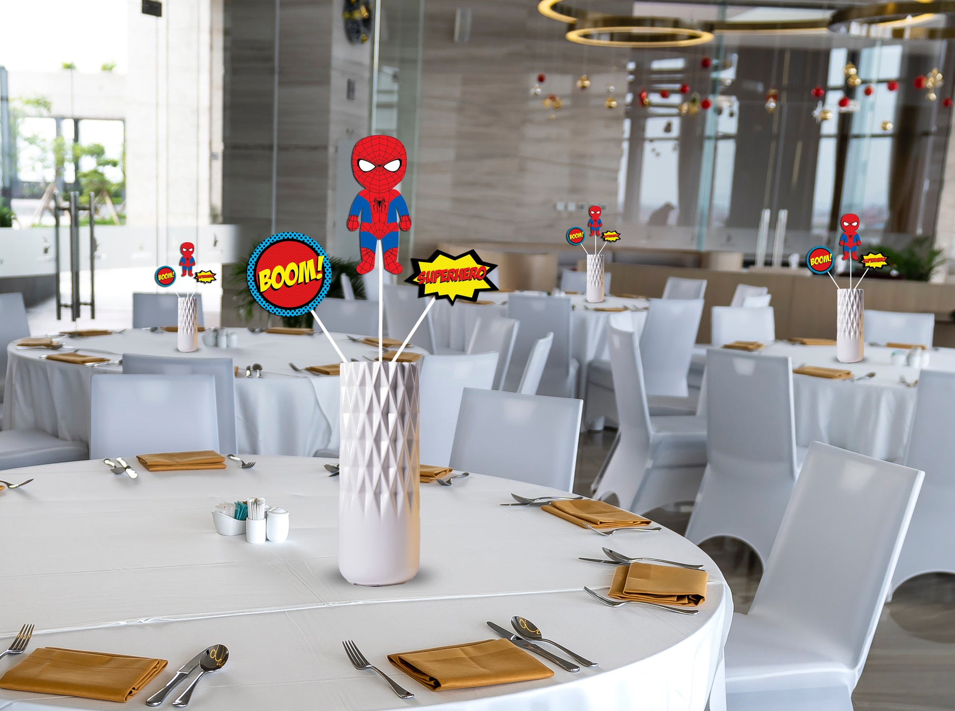 - Create easy centerpieces with our Super Hero Theme Party DIY Table Toppers, specially designed in 3 different designs.