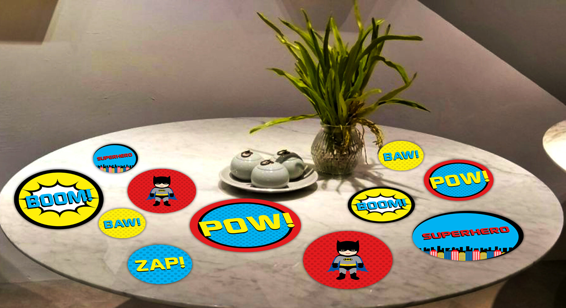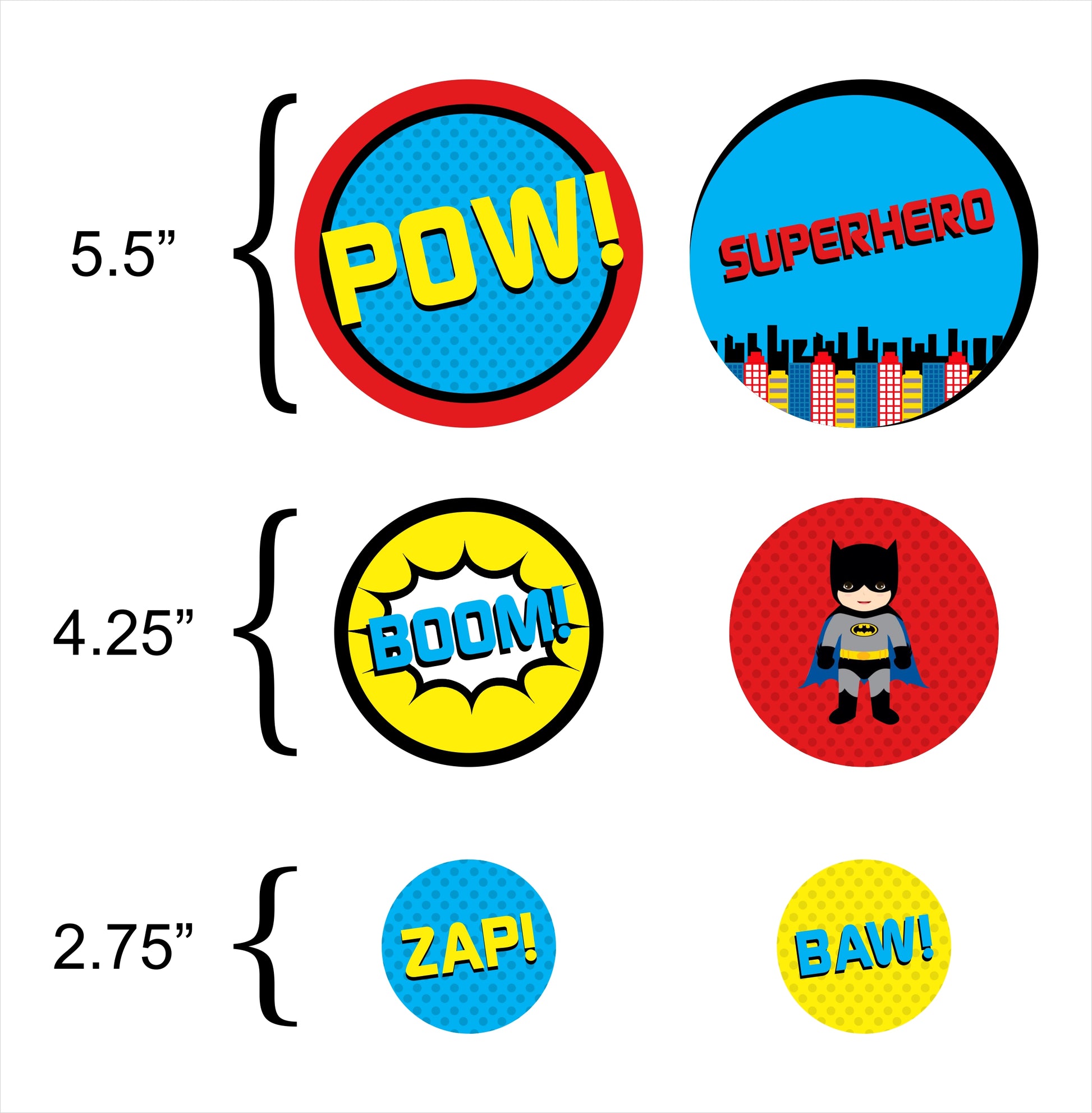 Super Hero Theme Birthday Party table confetti can be utilized or dispersed on the tables or hung together to make a pleasant banner. You can use them as Super Hero Party Gift tags.
