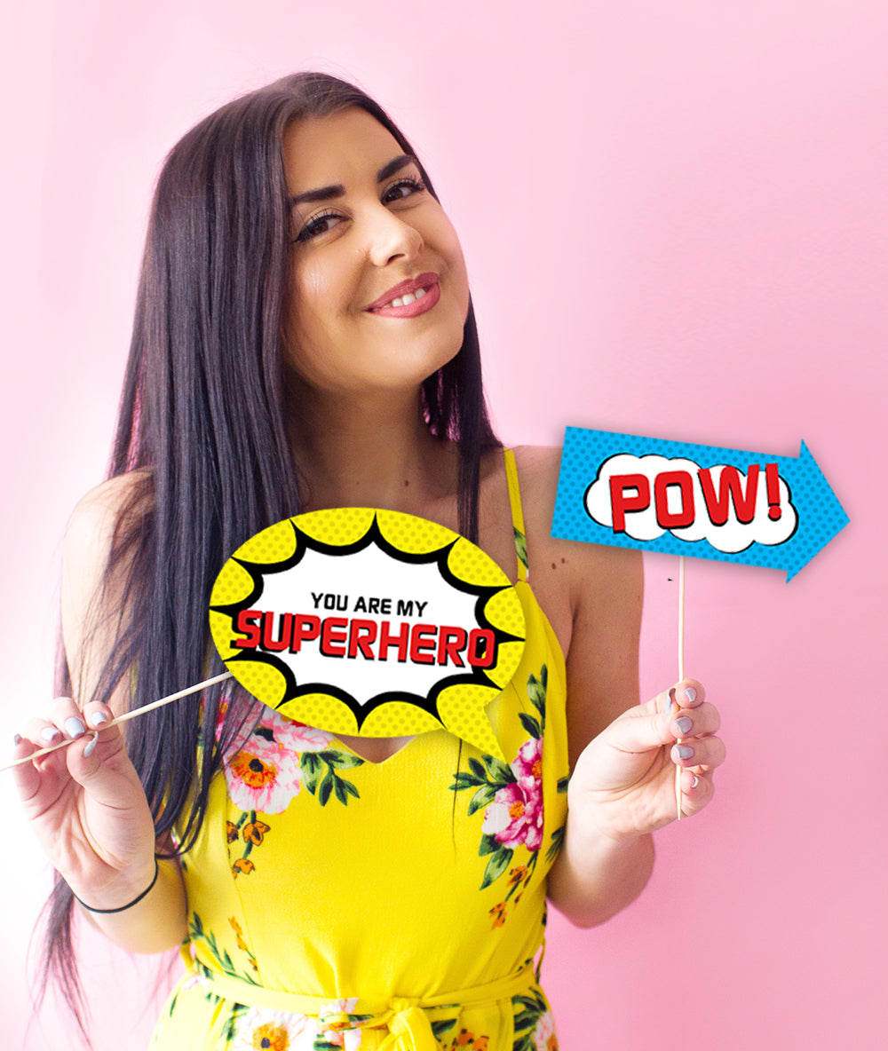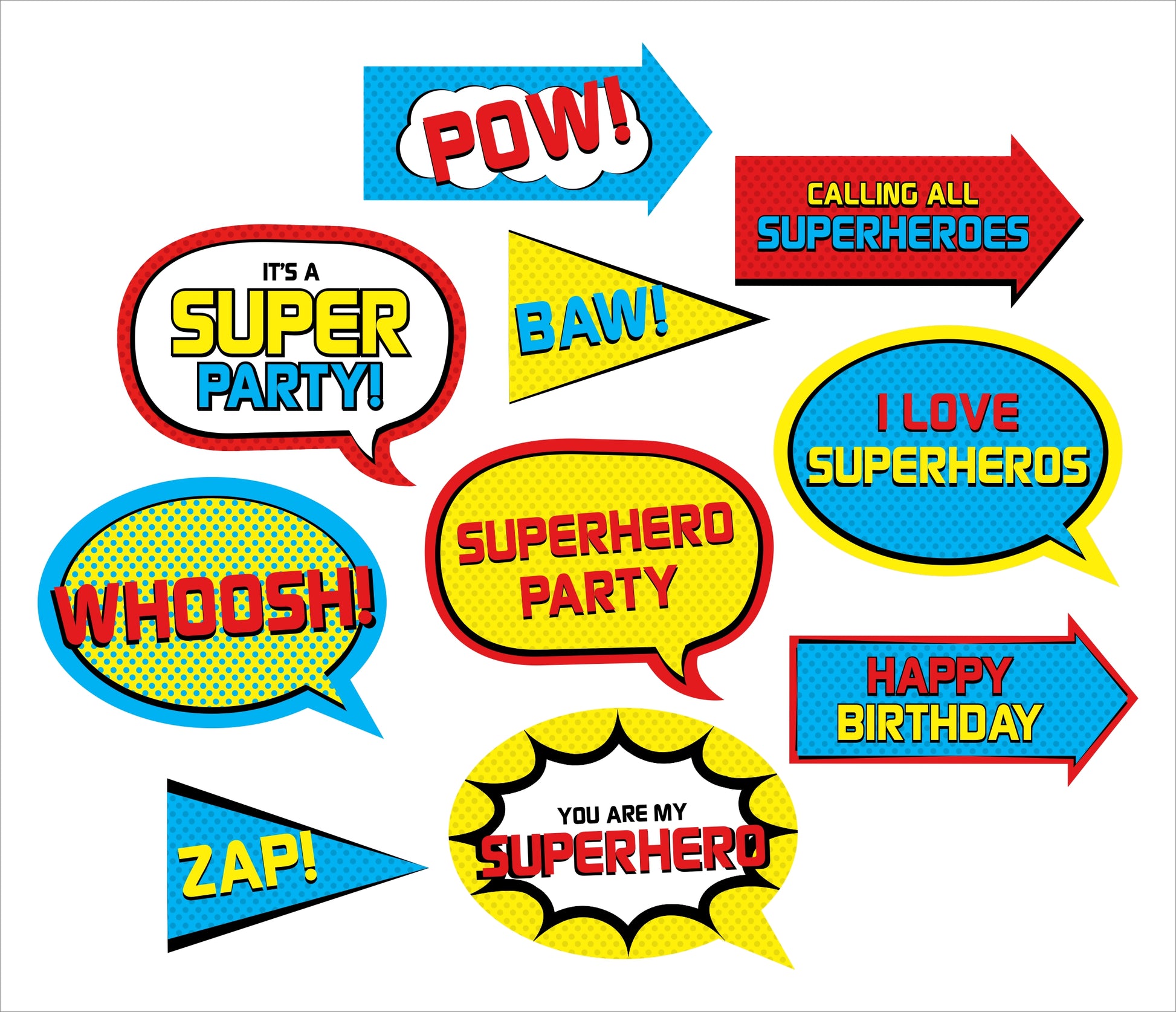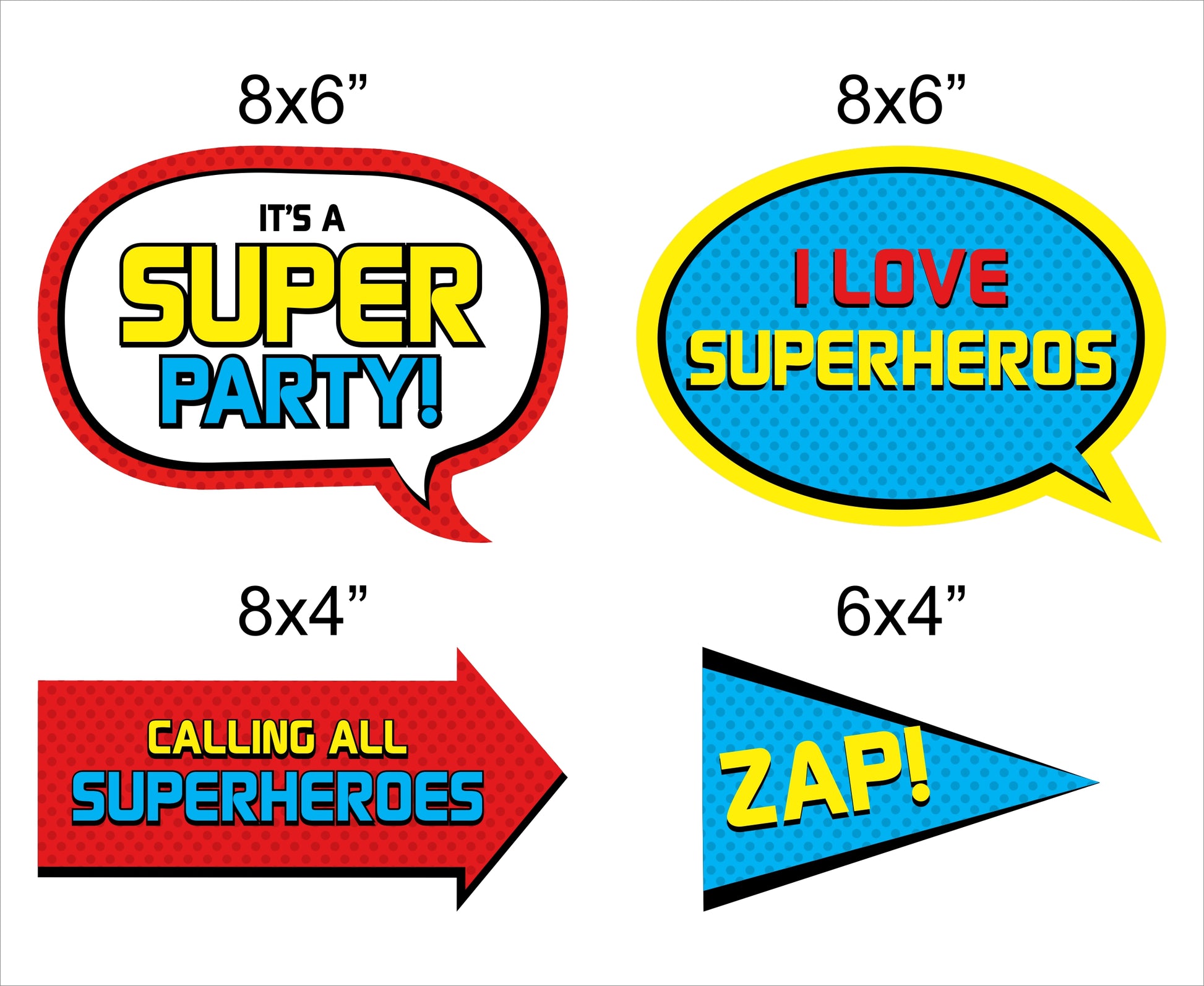 - Material: - Super Hero Theme photo booth props are printed on thick cardstock paper.