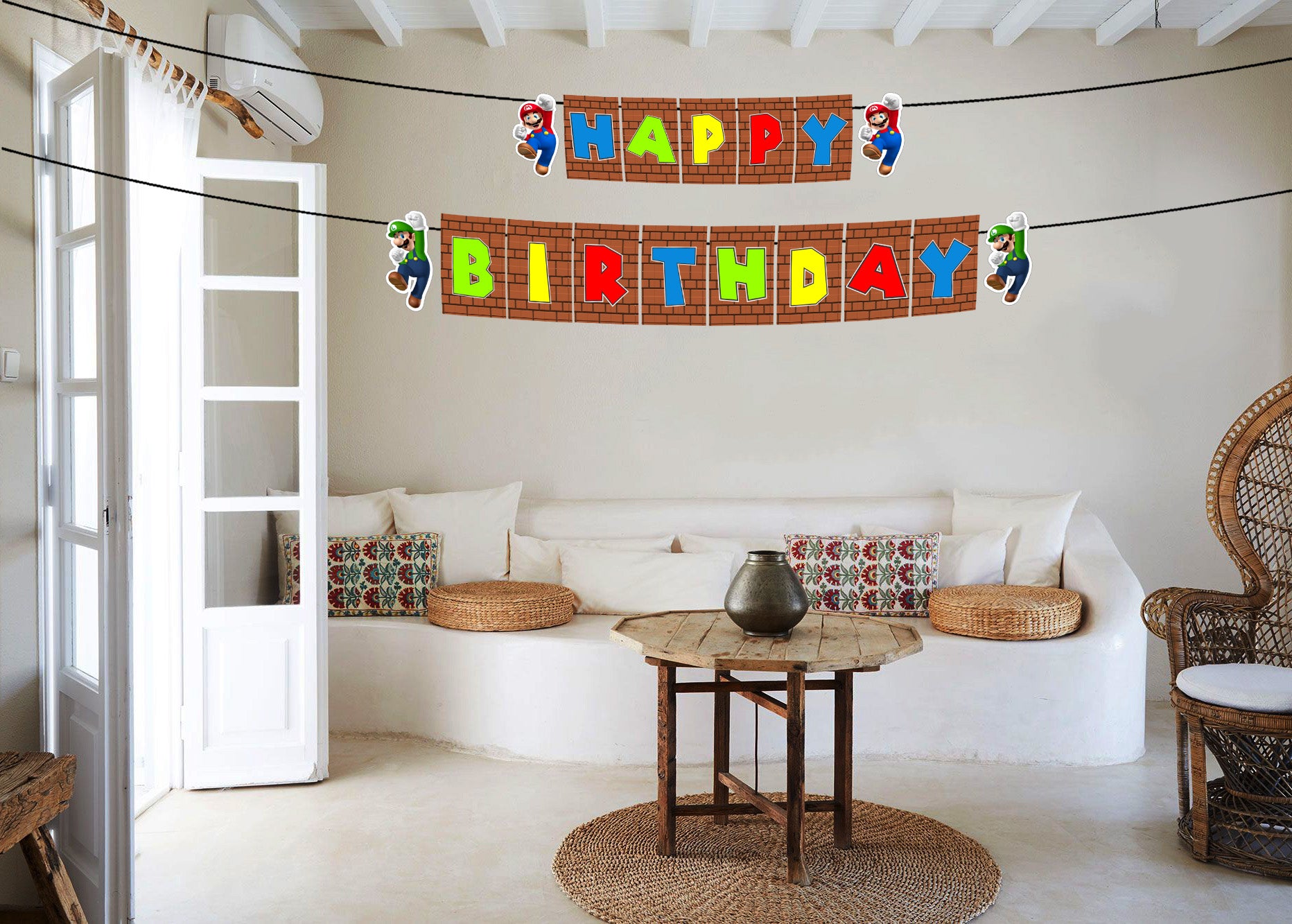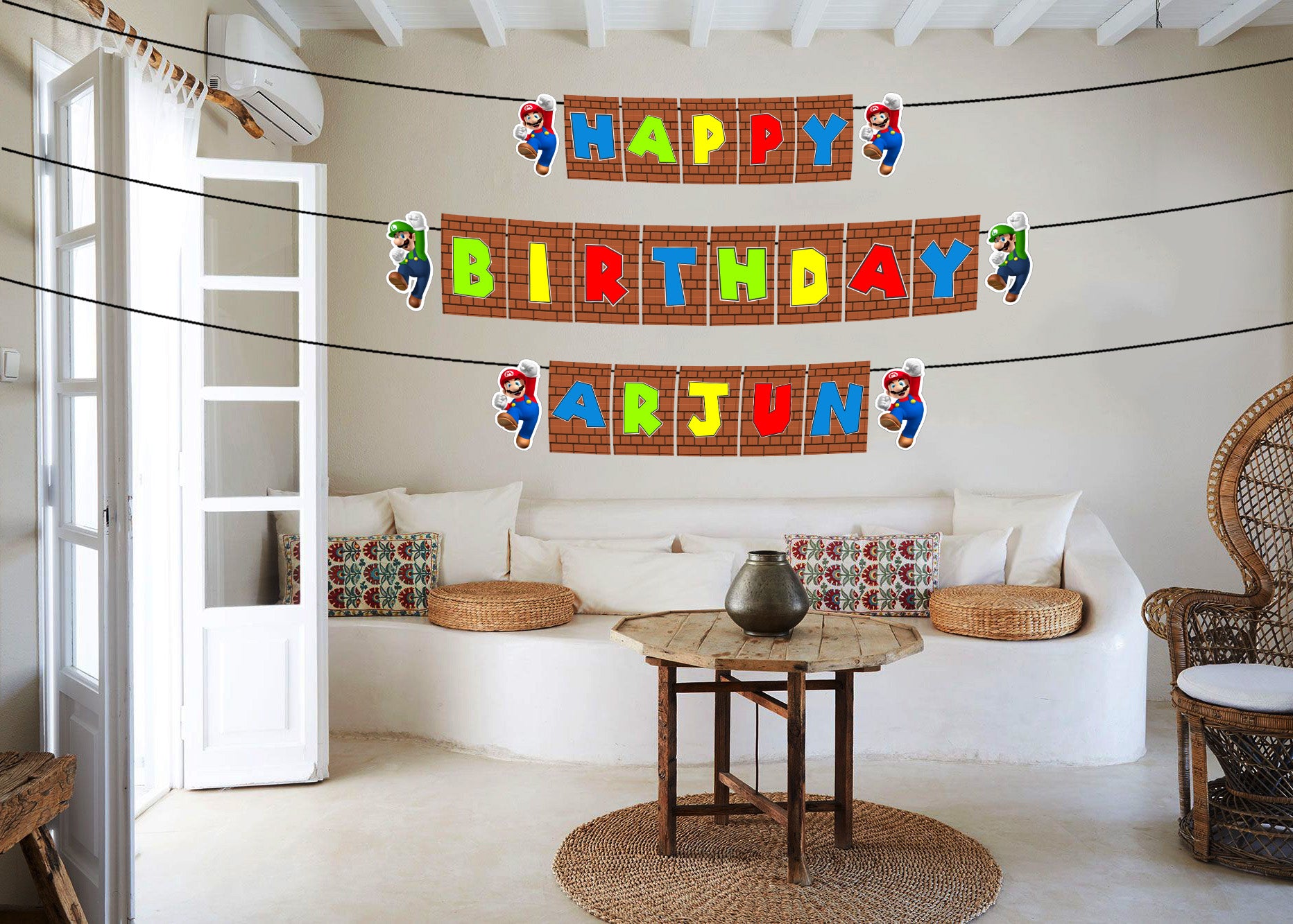 - Perfect Super Mario Theme Party Banner Decoration - Looking for shiny and elegant Super Mario party decorations? This Super Mario banner is the ideal decoration for your Jungle party. The Mario party banner will add a luxurious touch to your party and make your decorations awesome.