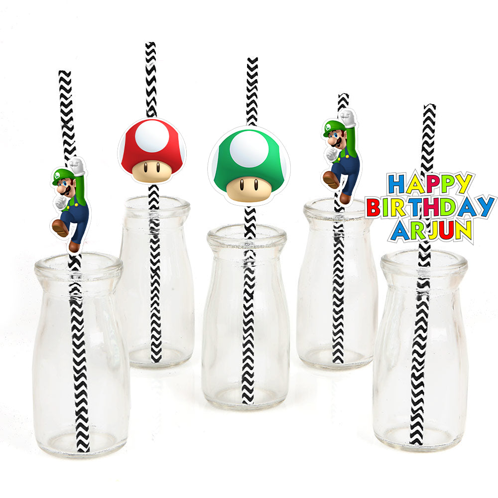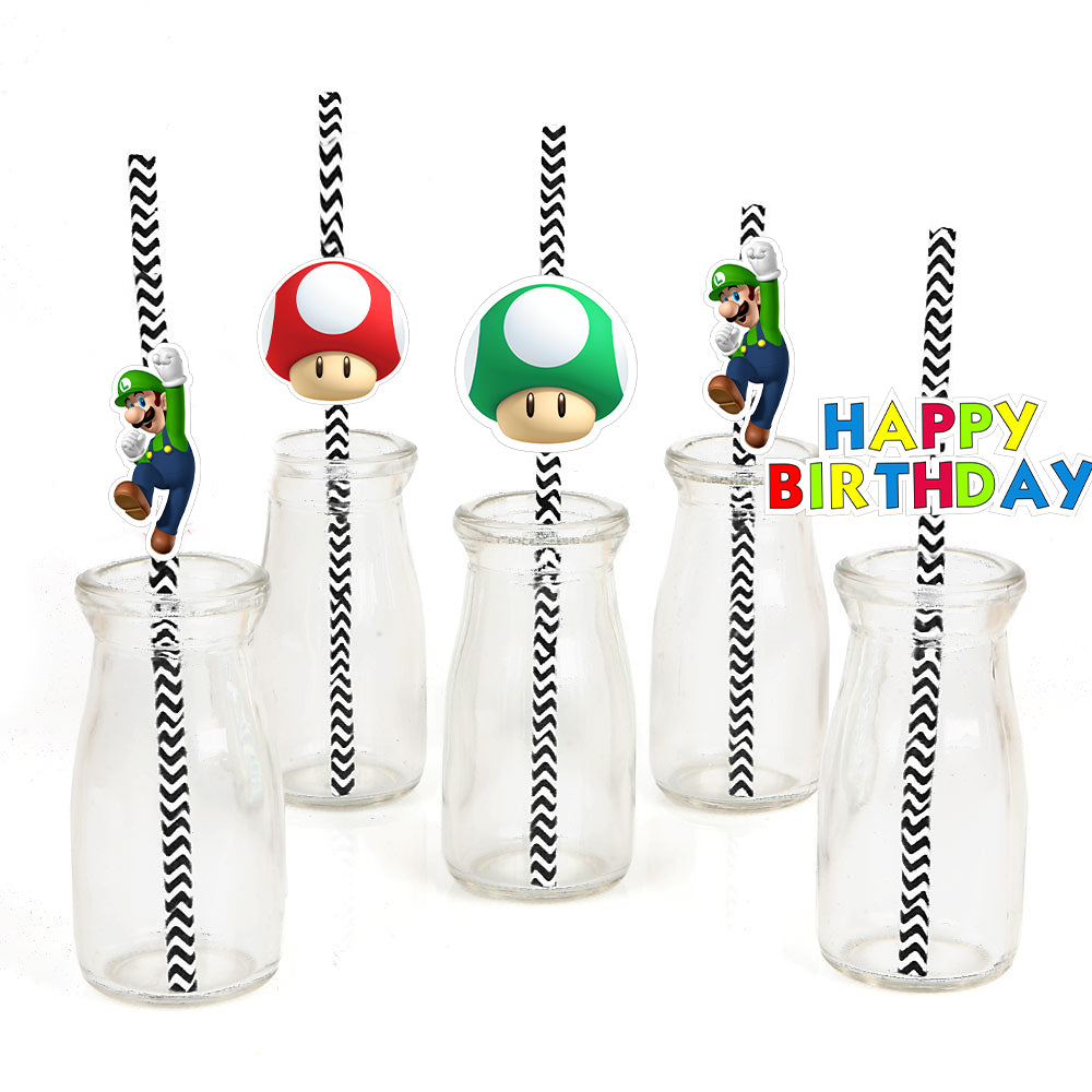 Super Mario Theme Birthday Party Paper Decorative Straws