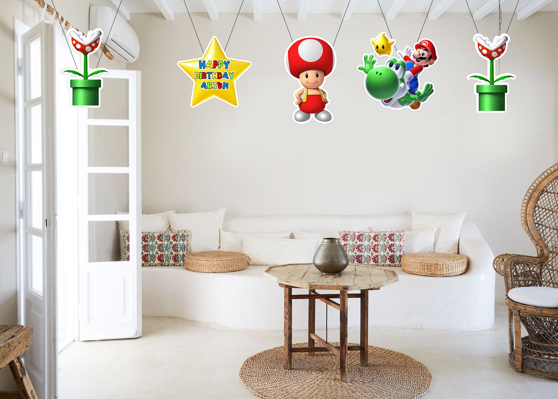 - Super Mario Theme hangings will add a beautiful touch to your kid's birthday party.