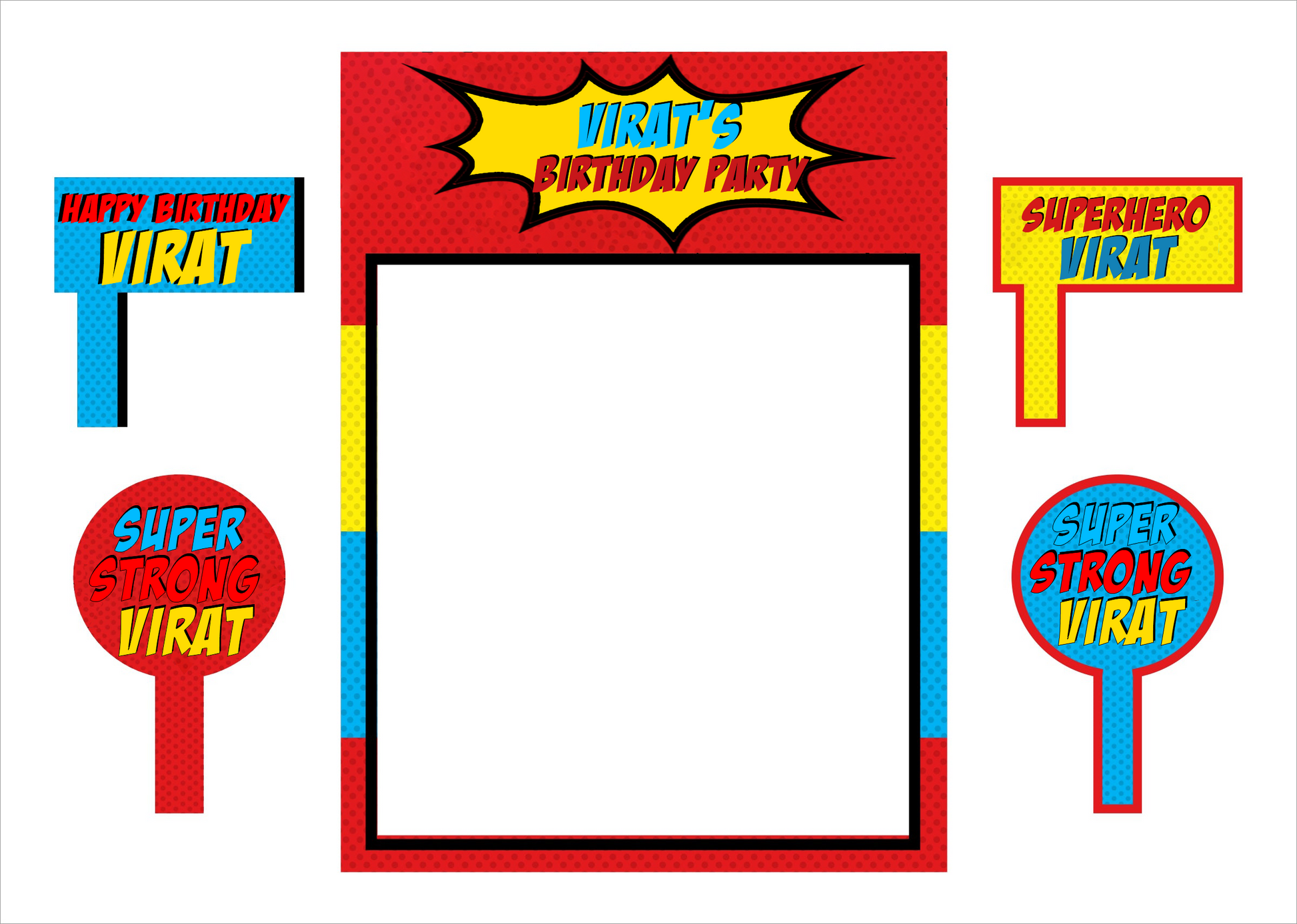 Super Hero Theme Birthday Party Selfie Photo Booth Frame & Props