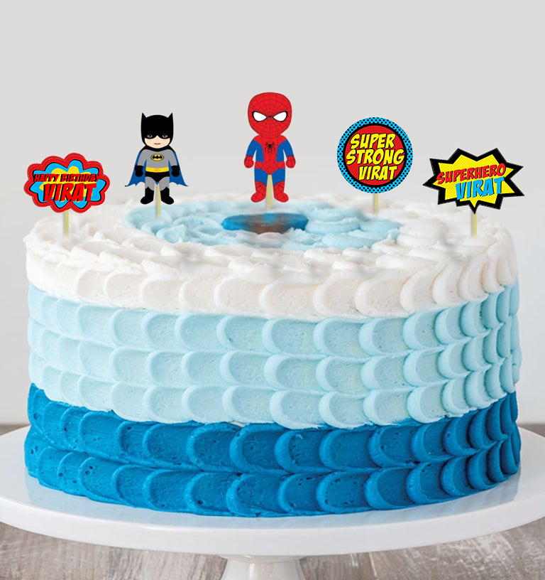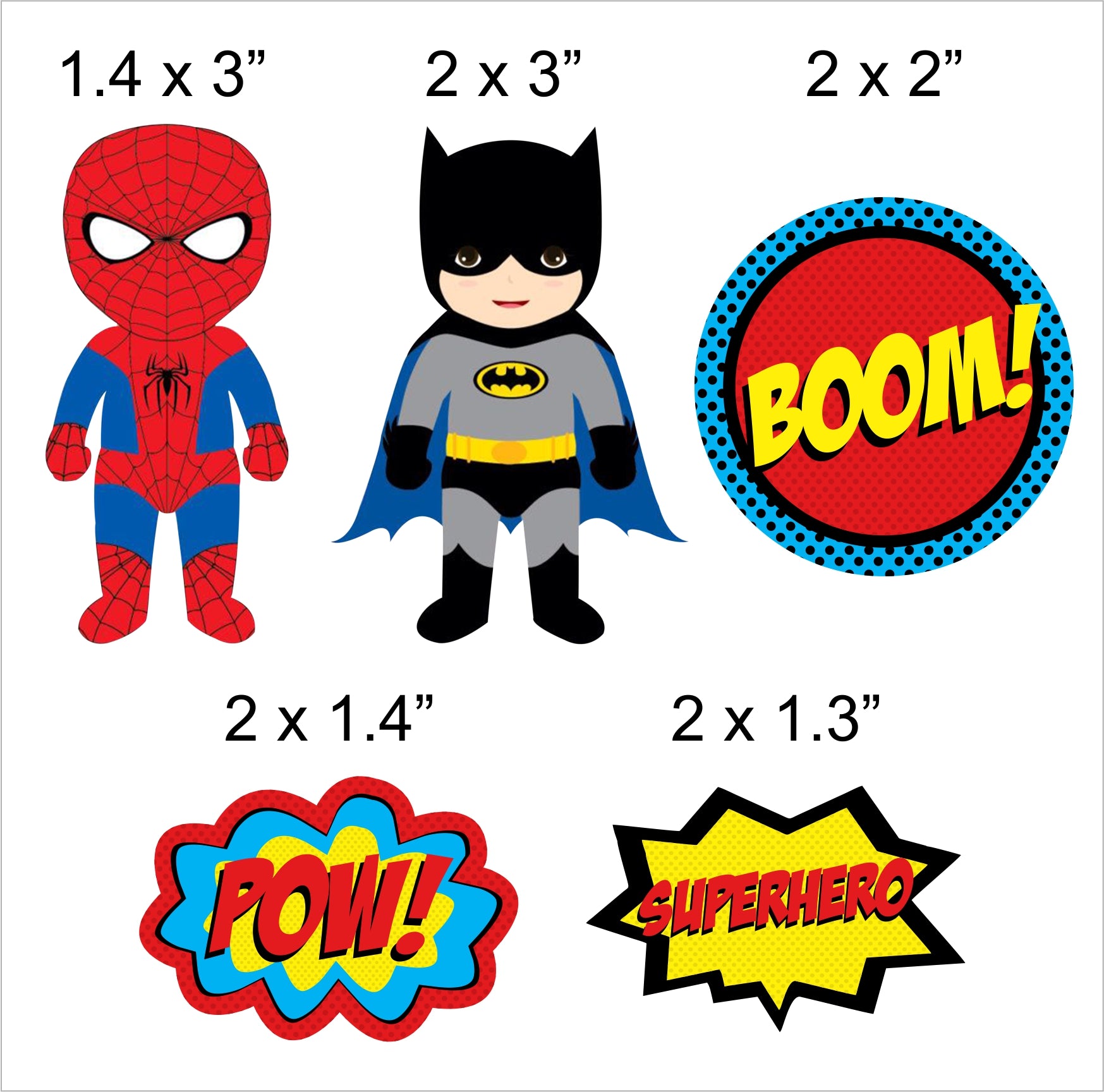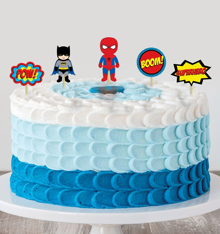 - How to use: - Include Super Hero Theme Cake toppers to your treat table to make an extraordinary theme cake show. Style the big cake topper with the two huge picks and add one small selection to each of the ten cut-out shapes to finish the cake embellishment.