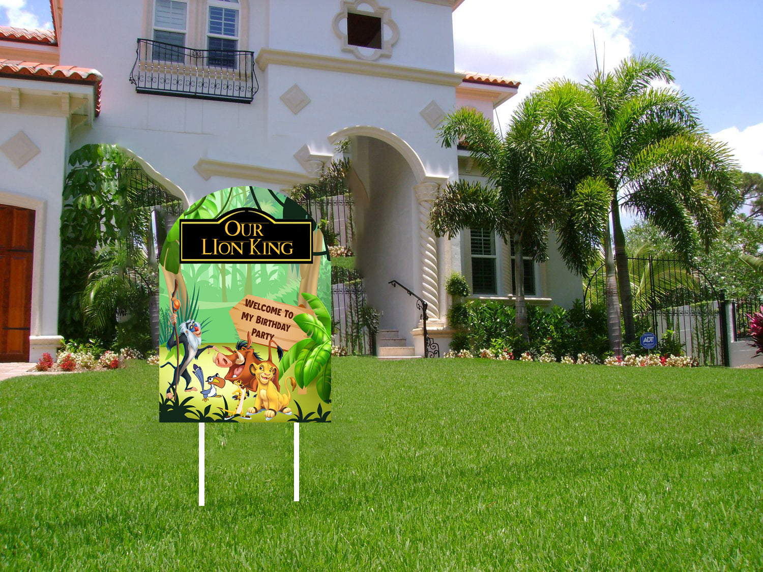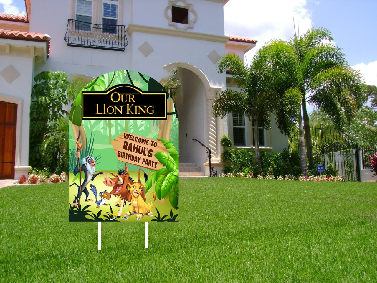 The The Lion King theme Welcome board sign is ideal for any home location or outside space. Welcome your friends and family members with a stunning welcome birthday party board.